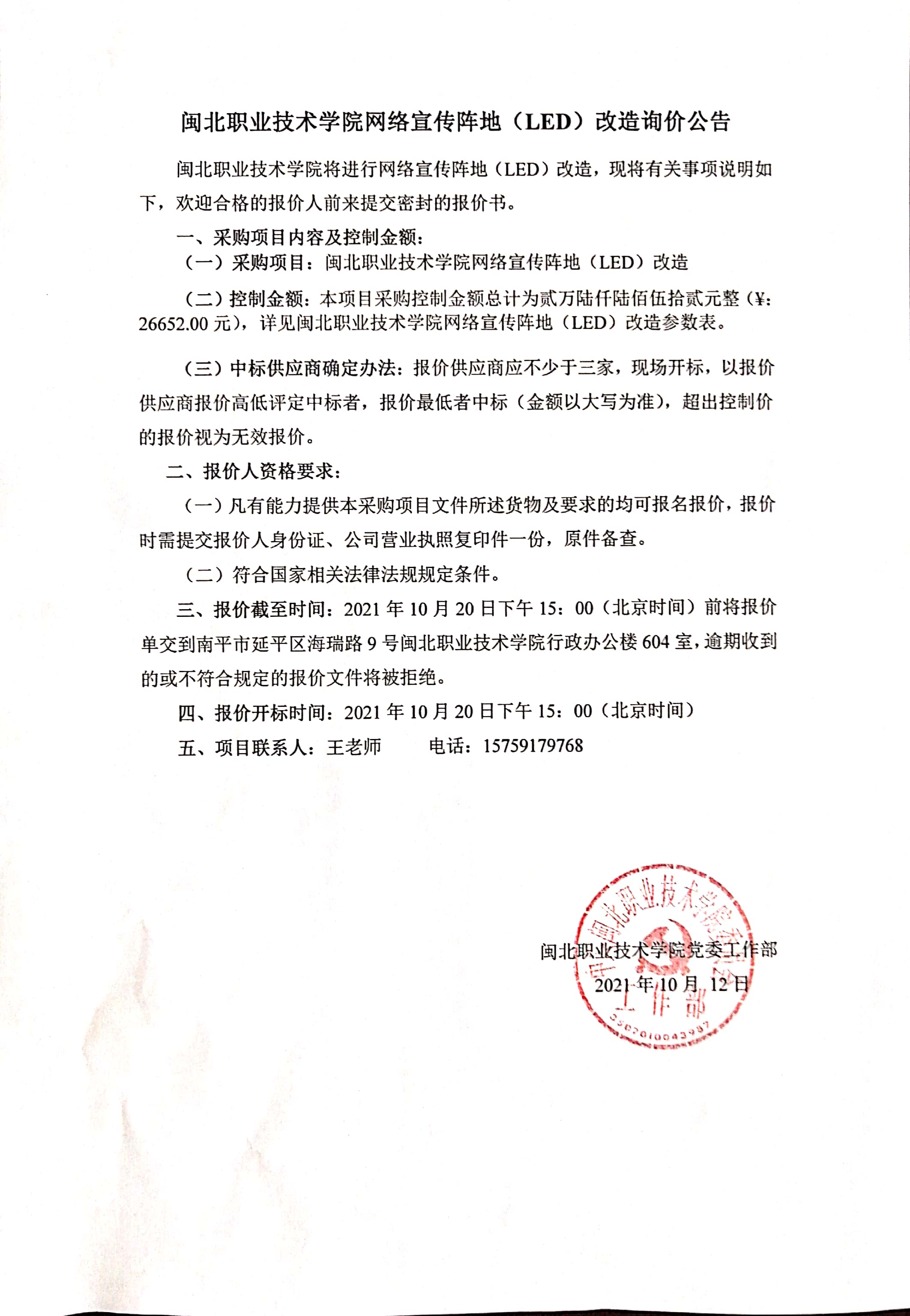 采彡争霸网络宣传阵地(LED)改造询价公告