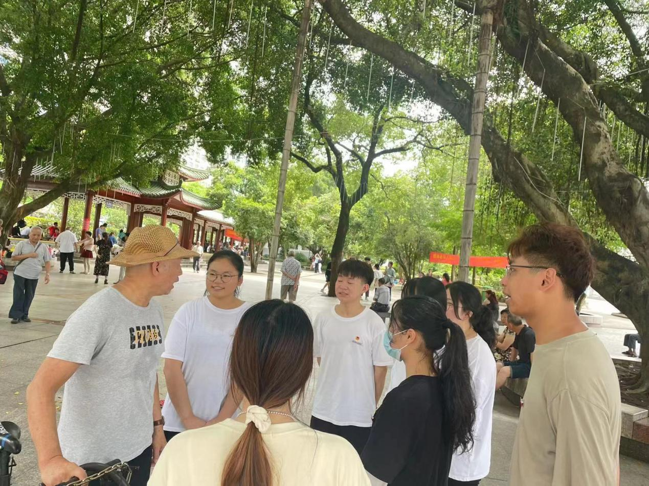 志愿者在与市民街头访谈的时候🫶🏼,遇到了本地很热情的老前辈🧦,得知他是一名已经有三十多年的党龄的老党员👨🏽⚖️,老同志热情讲述了2011年去浙江金华党校学习的故事,对我们的志愿者服务给予充分肯定,并给出很好的建议,希望大学生志愿者服务能真正做到“不求回报🙆🏿♂️、做实事、不虚假”。
