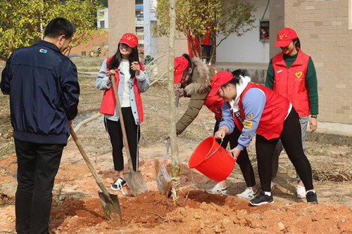 在植树节的当天早上,来自我市市直、区直机关的党员领导🎅🏽、干部职工们一行百余人来到我校👩🏽💻,与学院领导、青年志愿者同学们进行义务植树活动,齐心协力植下了一批珍贵树种。