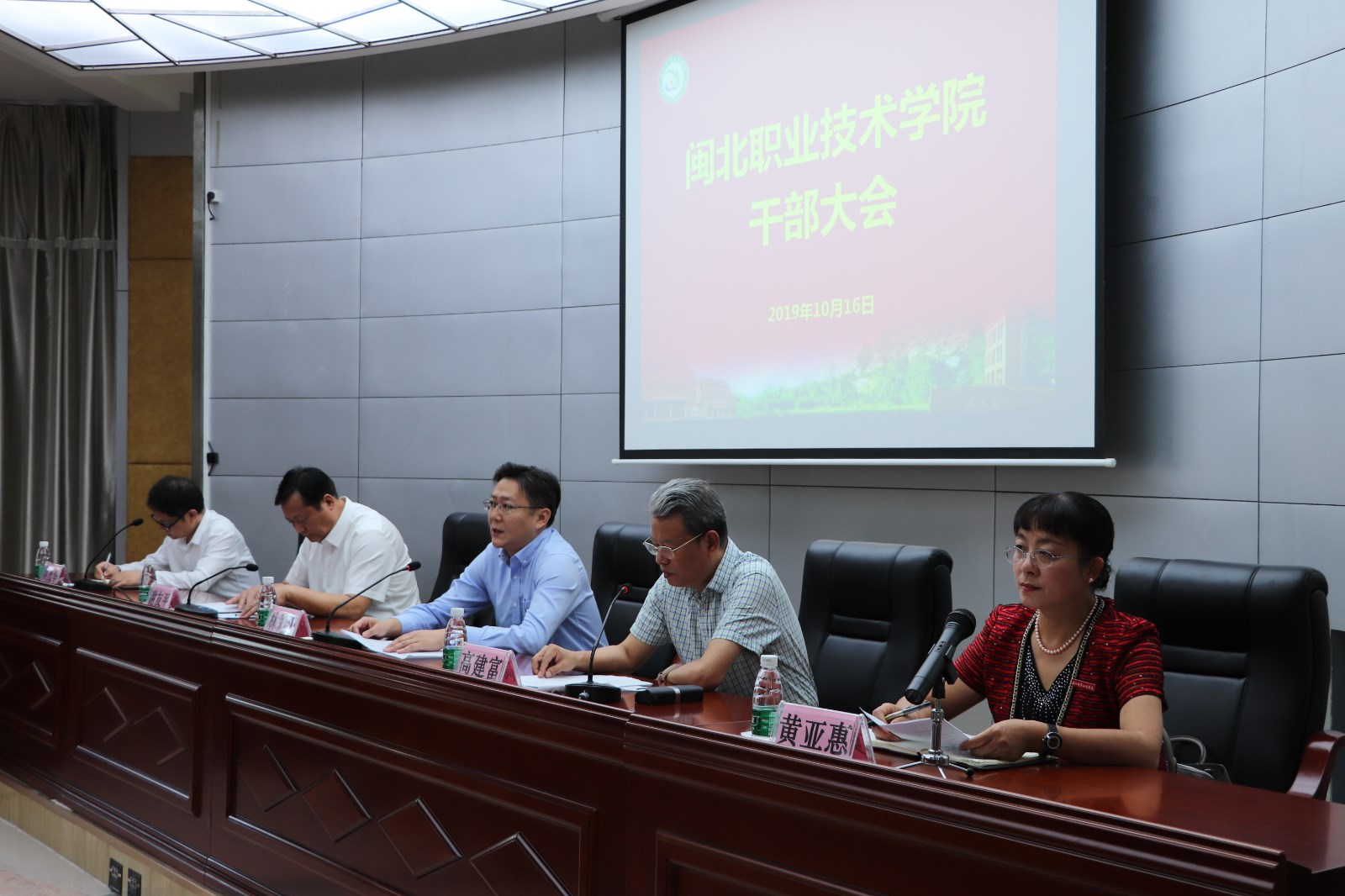 2019年10月16日下午,学院在行政楼一楼报告厅召开领导干部大会💣。南平市委常委🦸🏿♂️、组织部林旭阳部长、洪茂华副部长等一行来校宣布省委关于我院党委书记任命的决定。学院领导班子成员🧚🏿♀️,副科级以上干部🤌🏿、后备干部🧑🏽🎤🈂️、各党支部书记🏋️♀️、民主党派代表、学生干部代表等参加会议。