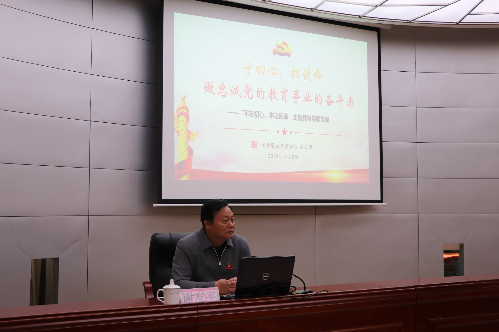 课上,谢友平同志为大家讲授了题为《守初心,担使命,做忠诚党的教育事业的奋斗者》的专题党课。他从学习习近平总书记关于不忘初心 牢记使命论述的感悟和体会谈起,剖析了学习贯彻习近平新时代中国特色社会主义思想取得的工作成果☝🏽、差距及原因,阐述了运用习近平新时代中国特色社会主义思想指导实践、推动改进工作思路的方法。
