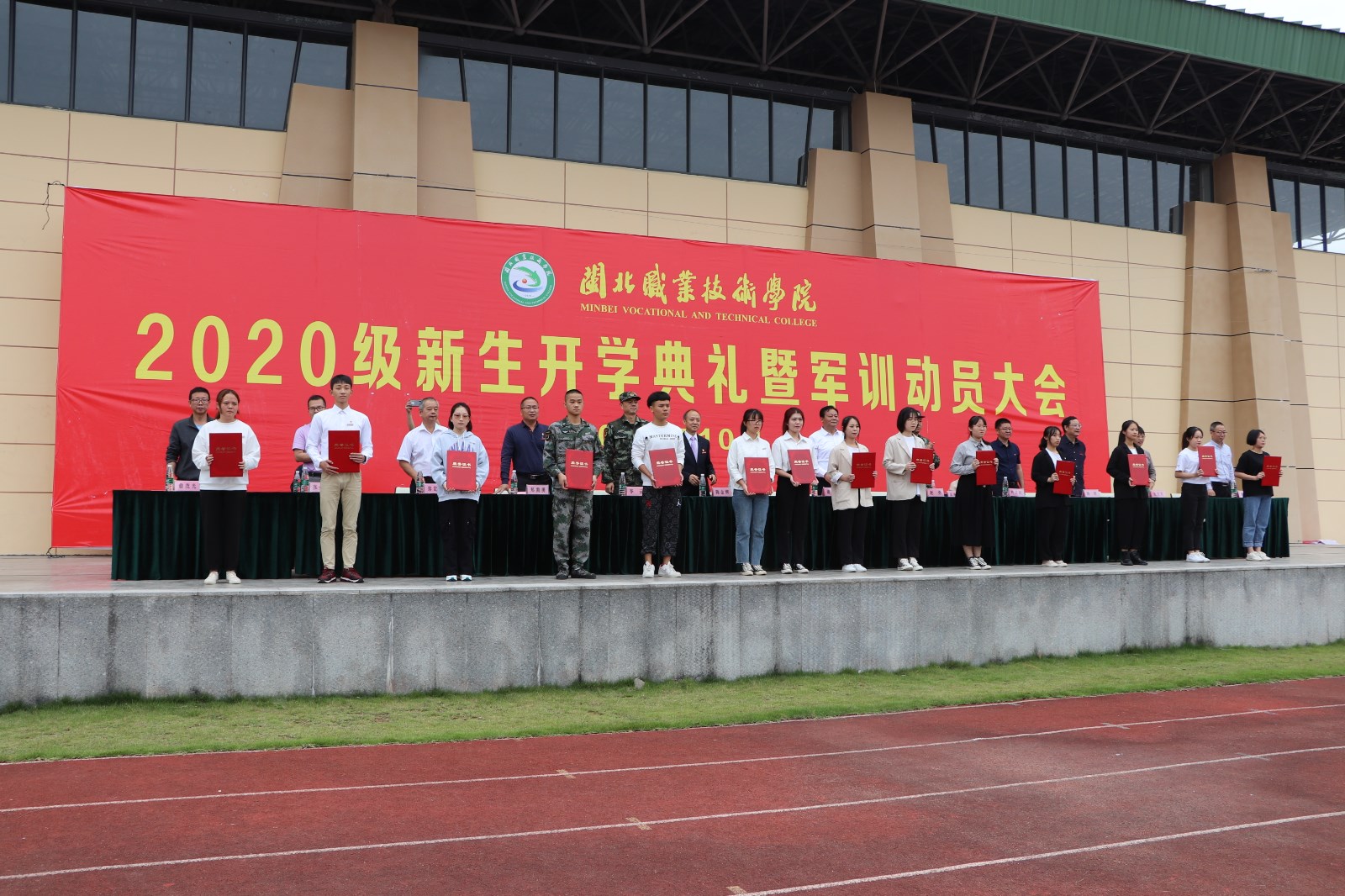 会上🙋🏿,学院领导、来宾还为“2019-2020学年校级一等奖学金”获奖者颁奖🧗🏼‍♂️。最后,武警南平支队政治委员赵勇代表驻训部队发表讲话🛝。在接下来为期13天的军训中,1852名新生将以饱满的精神🧑🏿、昂扬的斗志投入到军训这堂“开学第一课”中👷🏿‍♂️。