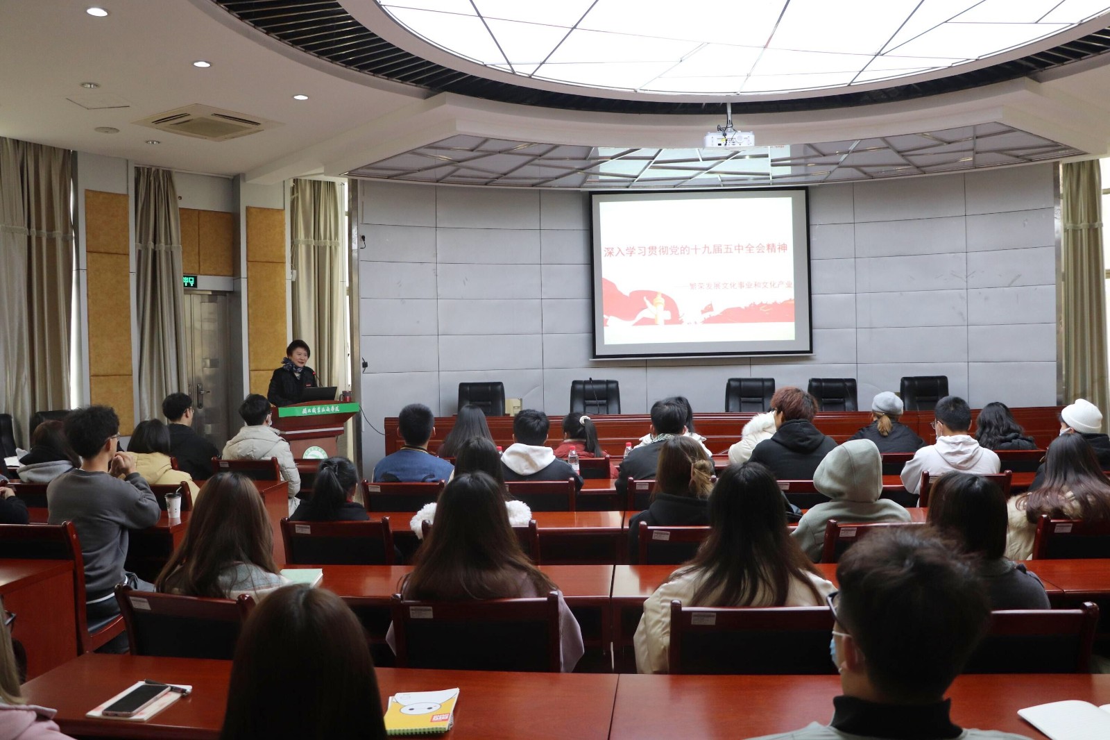 根据学院党委的统一部署,12月18日中午👩🏻🦯➡️,设计系兼管理系主任陈婷在行政楼一楼报告厅为设计系学生作学习贯彻党的十九届五中全会精神宣讲👨🏽🎤。