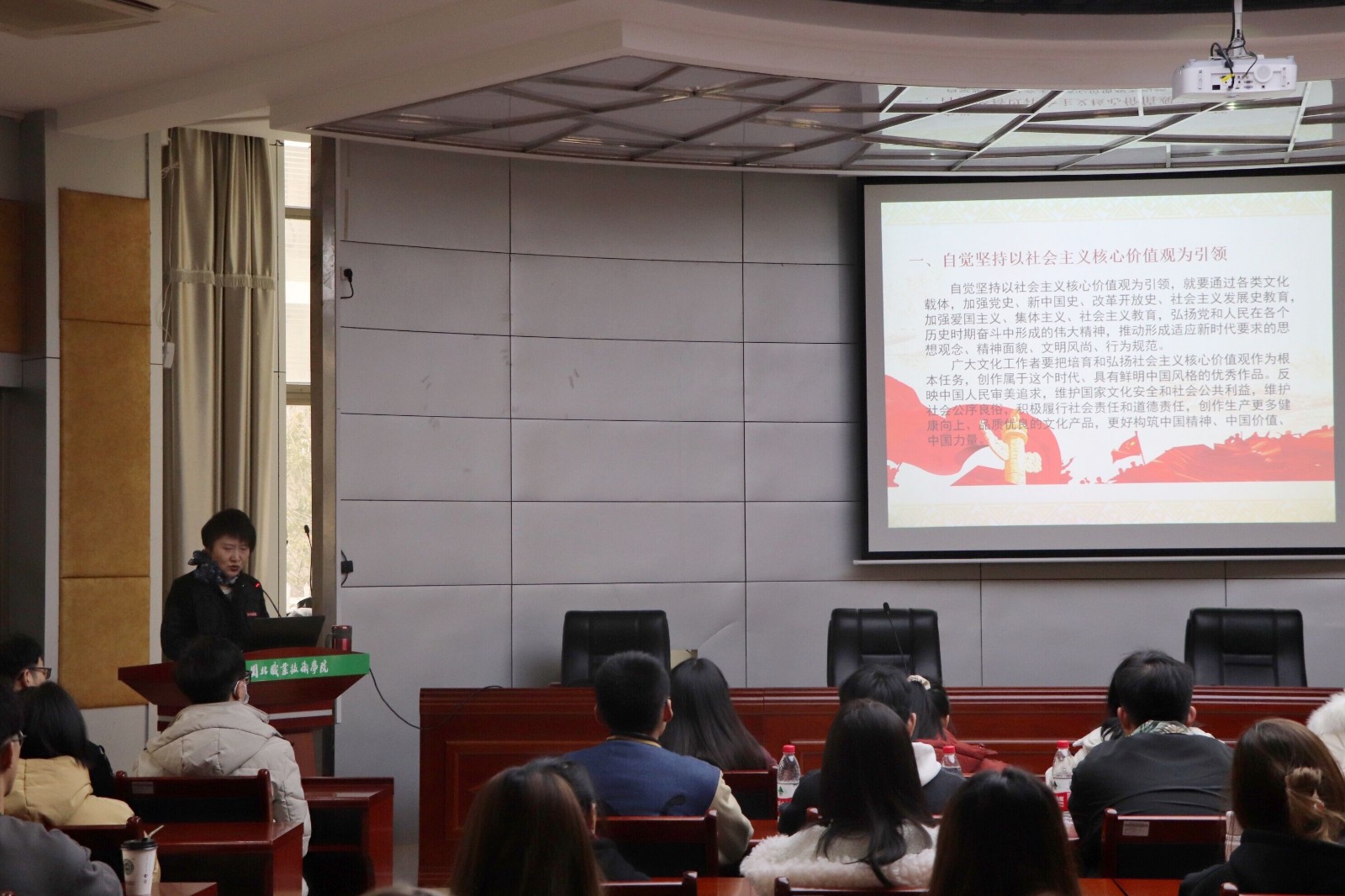 陈婷主任围绕《深入学习贯彻党的十九届五中全会精神——繁荣发展文化事业和文化产业,建成文化强国》主题,从自觉坚持以社会主义核心价值观为引领、始终坚持党的全面领导这个根本保证、牢牢把握推动高质量发展这个根本主题、有效激活改革创新这个根本动力、紧紧扣住满足人民日益增长的美好生活需要这个根本目的五个方面进行了阐述🗼,强调了在2035年建成文化强国的远景目标,希望同学们不忘习近平总书记的嘱托👐🏽,努力学习,“共走技能成才之路、共抒技能报国之志”,“裁剪梦想形状、设计职业蓝图”,以青春和热血铸就“文化强国”的光明未来👨🦲。