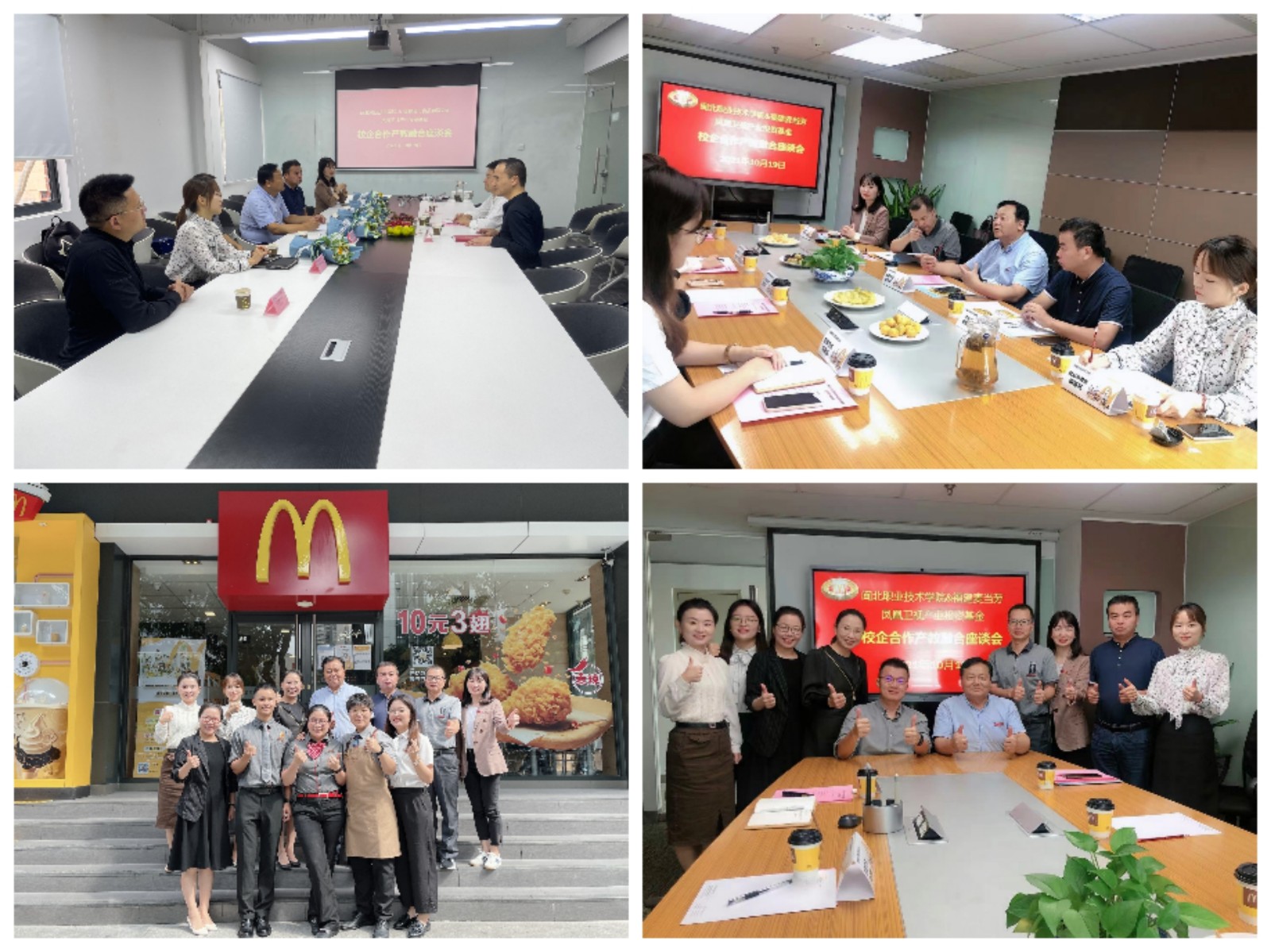 麦当劳(福建)人力资源总监黄燕平🎧、福建若可食品有限公司董事长郑焘、海欣食品股份有限公司董事长助理刘日忠热情接待了谢书记一行并与谢书记就校企合作等方面进行交流探讨。
