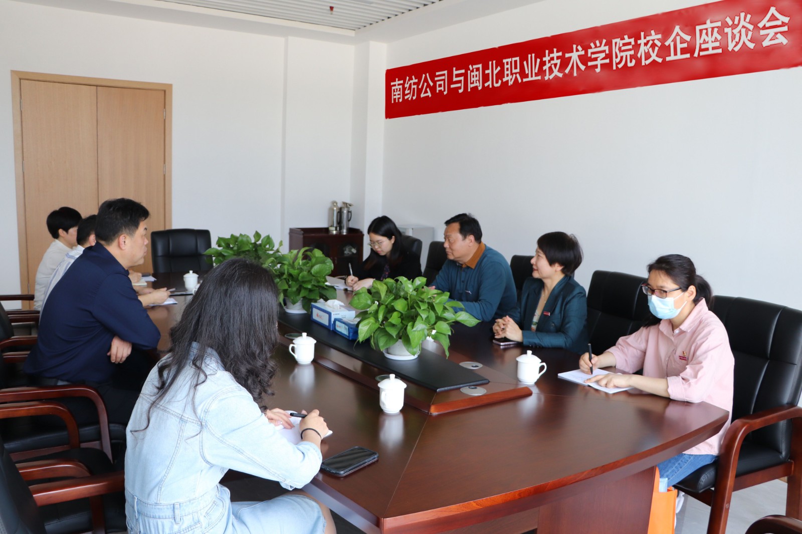 此次调研组实地走访了福建南纺股份有限公司,在座谈会上双方就党建工作、职工培训、学生实训实习、就业等方面做了深入交流。