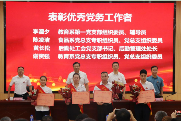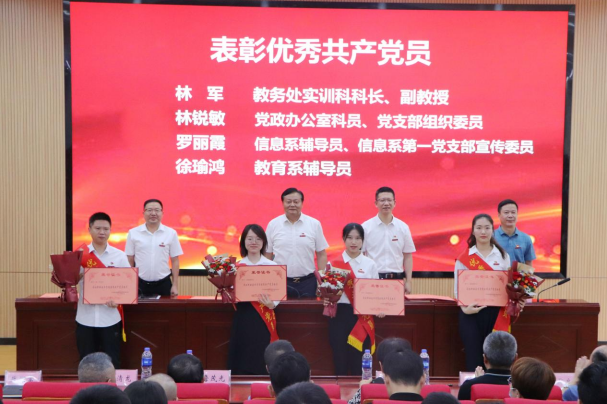 学院党委副书记蔡军宣读了《关于表彰学院优秀共产党员、优秀党务工作者和先进基层党组织的决定》,4个先进基层党组织、17名优秀共产党员、8名优秀党务工作者受到表彰,学院领导班子为受表彰的集体和个人颁发了奖牌和荣誉证书。