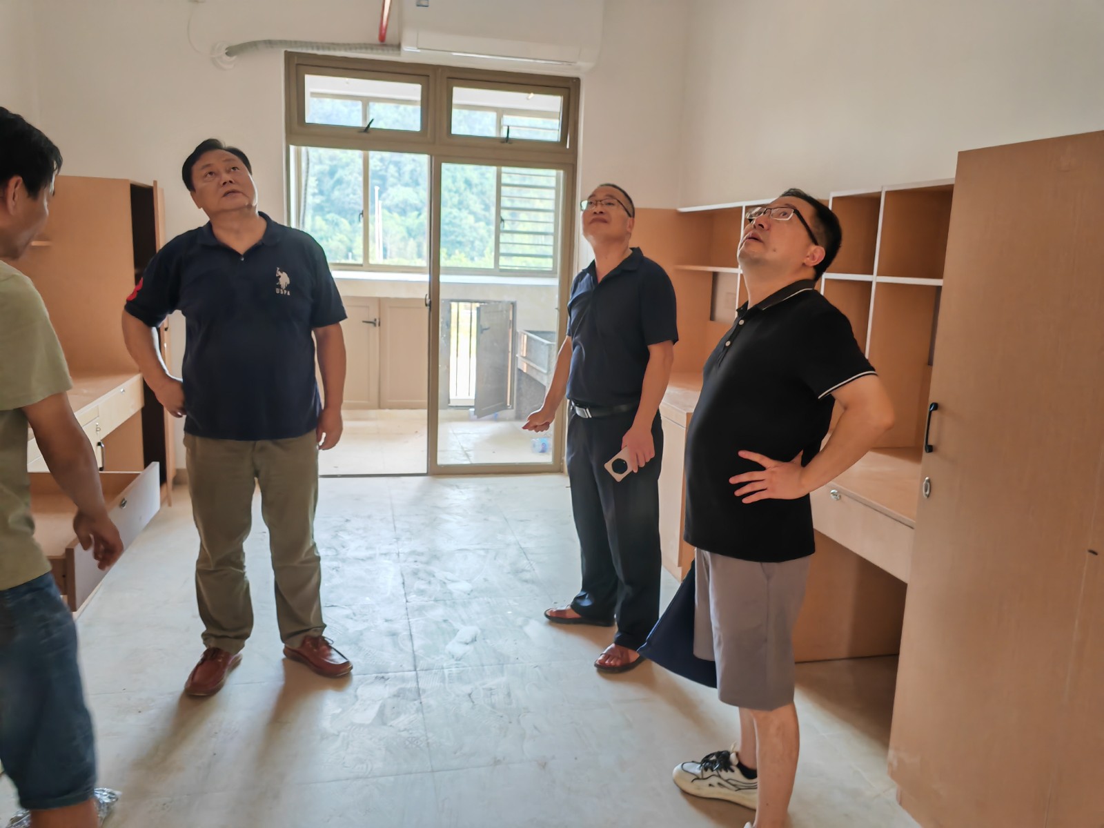 谢友平书记一行首先查看了29#30#学生宿舍楼室外工程建设情况(运动场所、绿化情况、电力配套、垃圾转运等)以及“五同公园”施工进度情况,之后深入到29#30#楼的学生宿舍中🙅🏼♂️,对学生用床🚖、学习桌椅、生活衣橱👨🏼🚒、空调设备、洗浴设施等配备情况进行视察🤰🏿🚽,并对29#30#学生宿舍楼存在的问题现场指导。