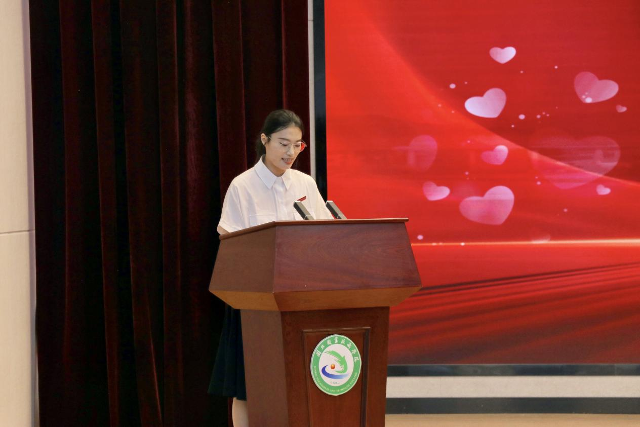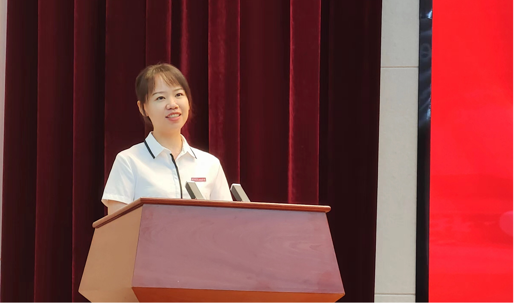 刘超婧老师代表获奖团队教师发言,她感慨道,“互联网+”大学生创新创业大赛是一场比拼综合素质的竞赛,金奖一直是我们努力的方向👲🏻,备赛的两年👩‍🔬✩,每一步,我们都走得踏实而坚定👨🏽‍🏭。金奖的获得🧕,除了我们团队成员的凝心聚力,克服重重困难外🏋🏻,还离不开学院系部的大力支持。她表示,作为入党积极分子,今后将要更加努力🙋𓀉,勇当使命,牢记入党初心,践行育人使命👐,作职教筑梦人。