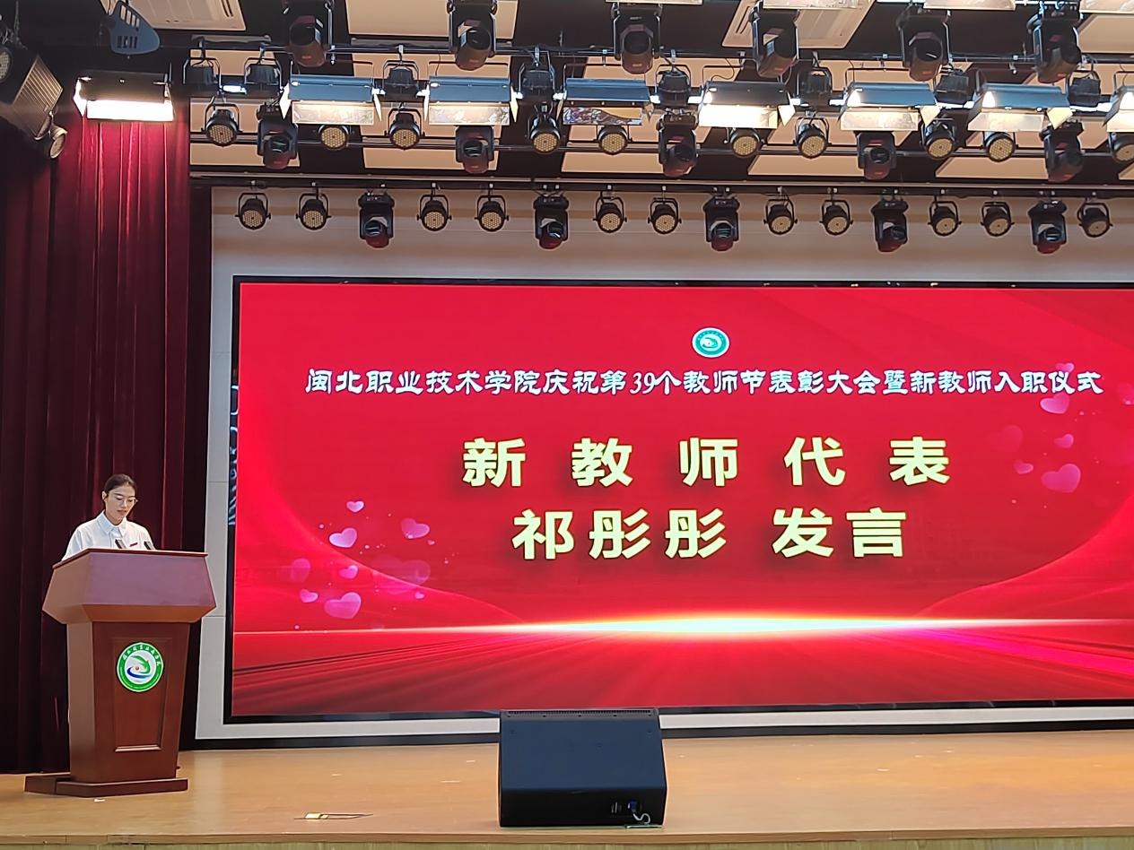 信息系辅导员祁彤彤代表全体新入职教师向老师们致以教师节最诚挚的问候与祝福。她表示,在人生中的新征程中🧔🏼‍♂️,要对教师职业心存敬畏。教育不同于其他任何一种职业,因为它是塑造人灵魂的事业,唯其伟大,所以艰巨;唯其艰巨🧗🏻‍♀️🙍‍♀️,更显荣光!要保持对工作的激情👯‍♂️。用激情和活力,弥补自己学生工作、教学经验的不足🎵🍴,不断学习、不断成长👩🏿‍✈️🍣,努力成为一名优秀的教育工作者👨‍🦲。要认真细致脚踏实地🐻。认真,就是认准真事⚡️,要做真事,学做真人。不急功近利,不急于求成⛄️。用心做事,用心做成事🎻。把劲提起来𓀝,把心沉下去,踏踏实实,做好每一件有意义的事🧘🏿‍♂️。全体新入职教师将继承闽职院“躬耕力行🧝🏿‍♀️、自强不息、开拓创新”的精神,接过老教师的接力棒,为闽职院高质量发展作出应有的贡献💾!