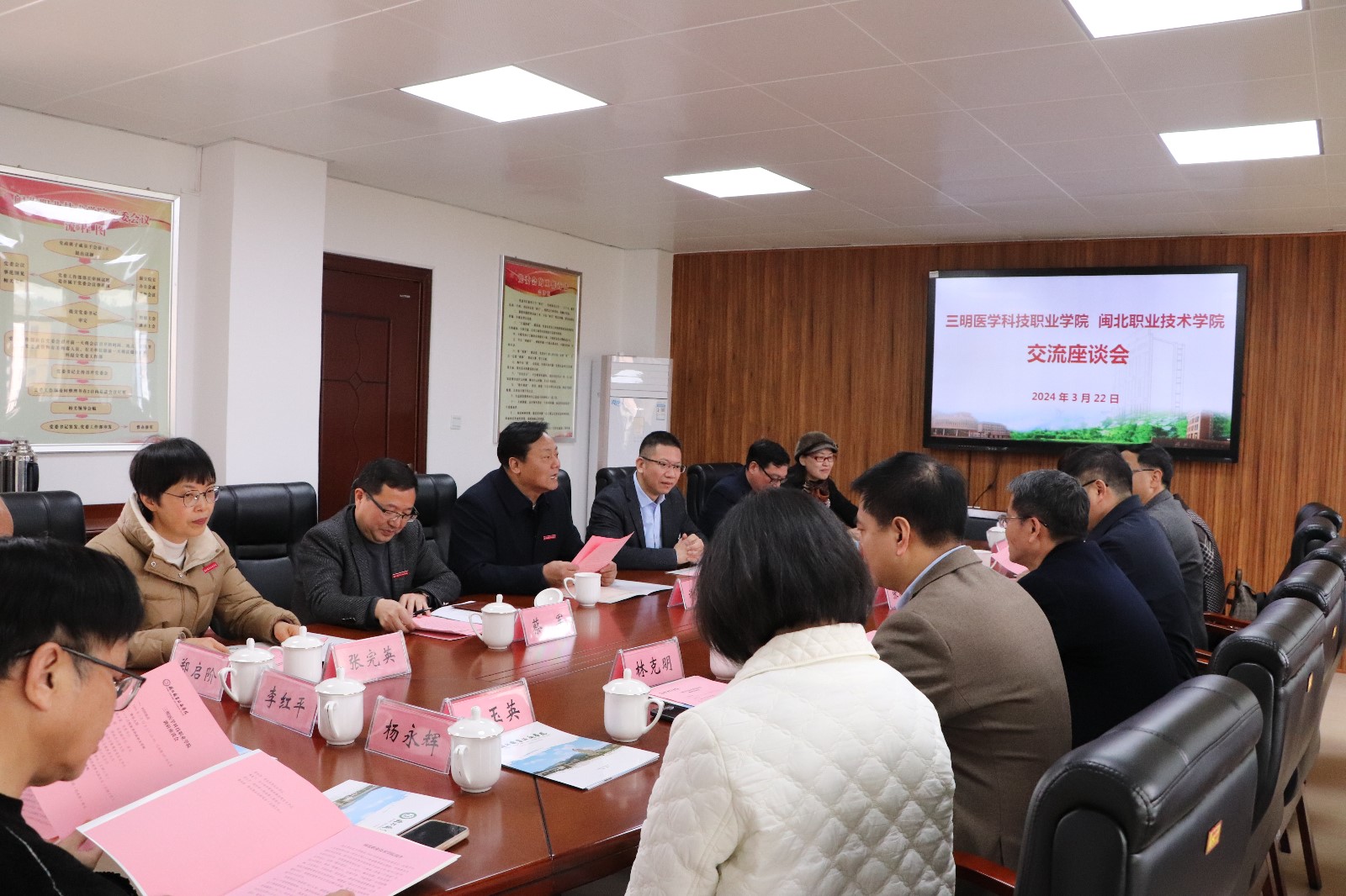 为加深校际间的交流与联系,3月22日上午👮🏼♂️,三明医学科技职业学院党委书记张松富🧖🏿♀️、院长陶榕一行8人到我院考察交流。我院党委书记谢友平🦸🏼♂️、院长叶世森🐊、党委副书记蔡军及相关部门负责人参加交流座谈并陪同考察。