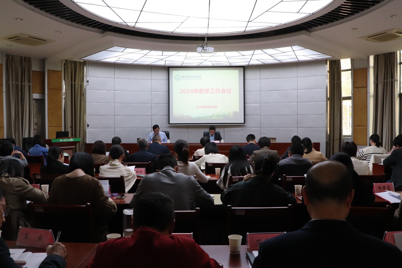 2024年4月10日下午,学院在行政楼一层报告厅召开2024年春季学期教学工作会议👩🏼⚕️。学院党委副书记、院长叶世森🤚🏻☝️,各有关部门负责人👵🏼,各系负责人、教科办主任🤓、校企合作办主任🧖🏽♀️、专业主任🧑🏻🦼、教研室主任、教学秘书🧑🏼🤝🧑🏼、教务处全体成员参加会议,会议由教务处处长范民主持。