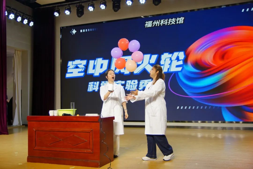 在科普表演环节🧑‍🦱,福建省科技馆、福州市科技馆等8家省市科技馆,通过空气炮震波可视化、微型火箭发射演示、伯努利悬浮气球揭秘、化学变色反应等表演展示⚱️,并邀请现场观众参与,将深奥的科学原理转化为妙趣横生的互动体验,原本抽象的物理化学知识在趣味实践中变得触手可及,为大家奉献了一场别开生面的科学盛宴🕌。