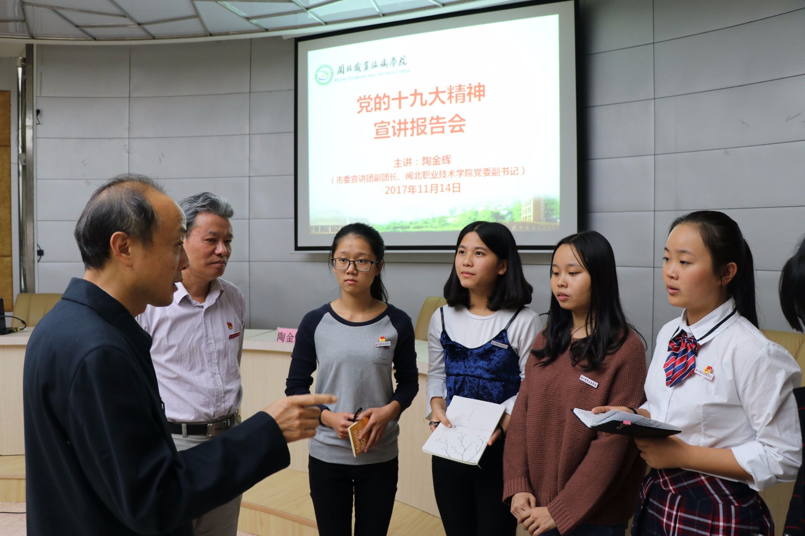 会后,市委宣讲团副团长、学院党委副书记陶金辉与师生进行了互动交流。