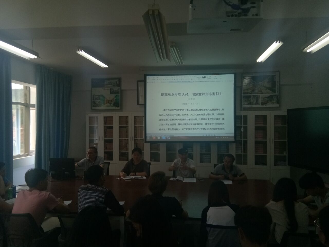 2018年4月13日中午,艺术与传播系在行政楼310会议室召开学生干部联席会议,系党总支班子成员、系辅导员、系学生会主要干部及2016、2017级各班班长、团支部书记参加了会议。会议分为两个阶段,在第一阶段,系总支班子认真听取了学生干部对系学生管理、教学安排、课堂纪律、宿舍文明、文化活动等各方面的意见和建议;在第二阶段,系总支书记、主任郑需勇给学生干部做了题为“提高意识形态认识,增强意识形态辨别力”的专题辅导报告。在报告中,郑需勇分析了当前大学生面临的主要意识形态问题及问题产生的原因,组织学生干部观看了求是访谈节目“历史虚无主义的基本特征和根源”,帮助学生干部进一步提高对国家意识形态安全问题的认识,增强了学生干部的意识形态辨别力。专题讲座期间,还对学生干部开展了意识形态问卷调查。