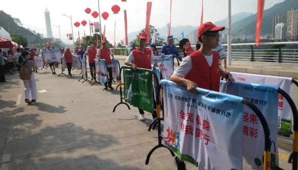 在南平市青年志愿者协会的组织下,来自我院的120多名大学生青年志愿者们前往比赛现场,开始了服务赛事的全程工作。同学们在赛前为选手登记号码牌,比赛时引导选手、递送补给,同时承担起终点检录、折返点补给等一系列繁杂的工作,成为赛事最有力的后勤保障,助参赛者顺利完成比赛。我院的青年志愿者们再一次以饱满的热情向全市人民展现了学院青年学子的风采,同时顺利完成环城跑的志愿服务。