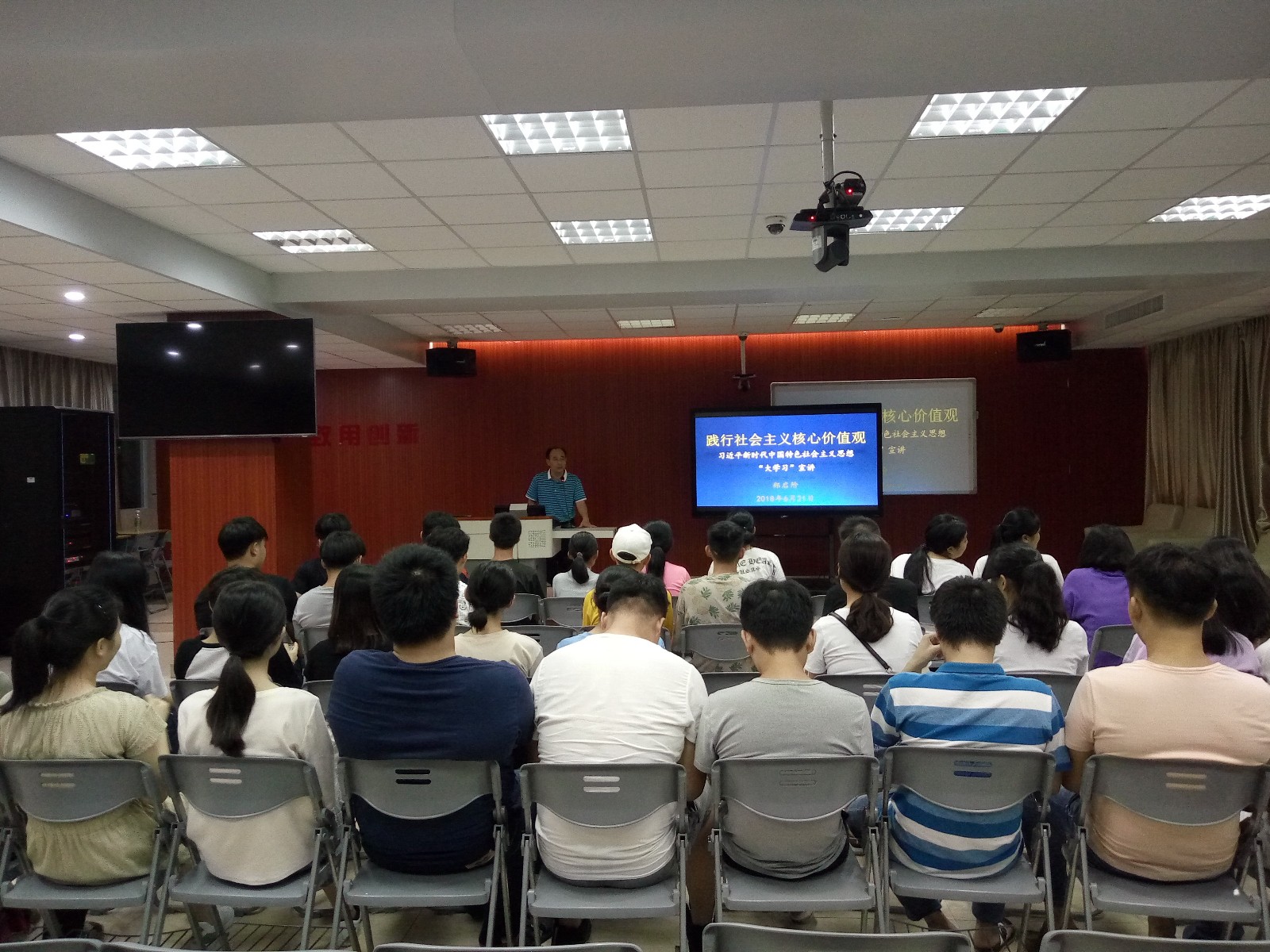为深入学习贯彻党的十九大精神,结合开展“不忘初心、牢记使命”主题教育,着力推动习近平新时代中国特色社会主义思想的落地生根,6月21日下午,信息系和食品系召开了习近平新时代中国特色社会主义思想“大学习”宣讲报告会,两系学生代表及学生科成员参加了会议,总支副书记郑启阶同志作了题为《践行社会主义核心价值观》的宣讲报告。