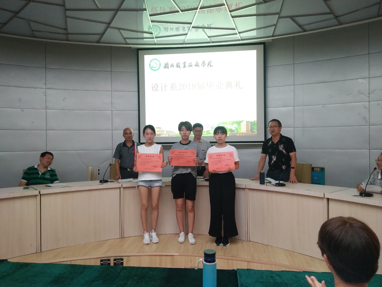 毕业典礼上,系学生科吴亮老师宣读了国家奖学金、国家励志奖学金和2018届优秀毕业生名单,系教科办主任白雁飞宣读了2018届毕业生名单和2018届优秀毕业设计作品表彰名单,主席台就座领导依次给获奖毕业生颁发了奖状,给毕业生颁发了毕业证书。