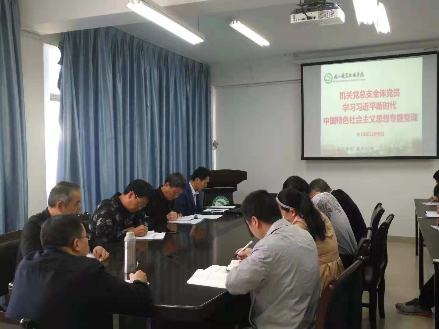 2018年11月6日上午,学院机关党总支在行政楼五楼会议室召开“习近平新时代中国特色社会主义思想”专题党课学习会。学院机关党总支委员刘林同志作“习近平新时代中国特色社会主义思想”专题党课学习辅导,通过专题党课学习,机关全体党员切实体会到习近平总书记对青年大学生的满满关怀和殷切期望,深刻理解“青年兴则国家兴,青年强则国家强”这句话的丰富内涵,与会党员表示一定不负习近平总书记的重托,勇于担当,教书育人。会后,机关党总支党员参加了学习贯彻习近平新时代中国特色社会主义思想和党的十九大精神应知应会考试。