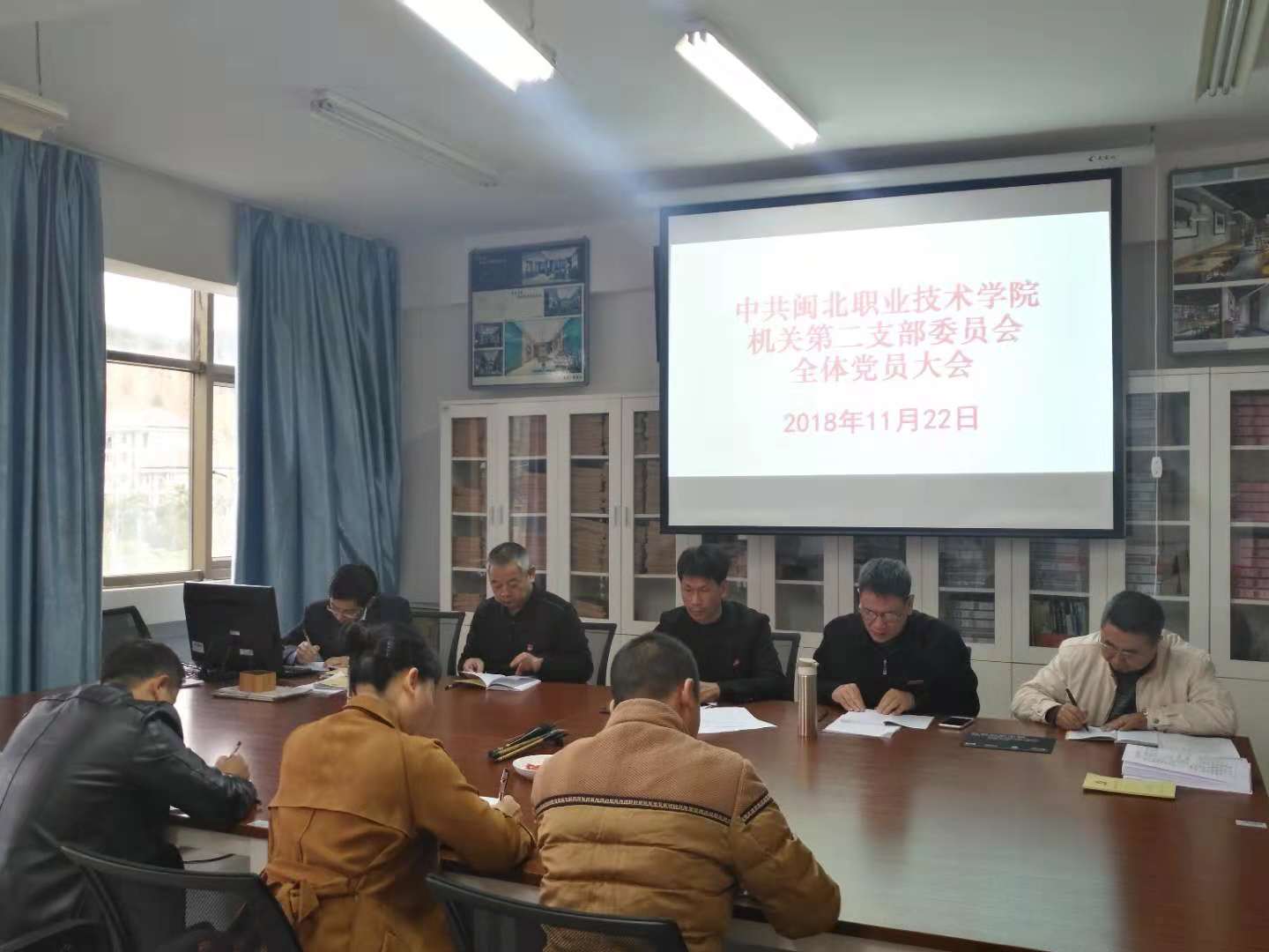 20181122日上午,学院机关第二支部在行政楼楼会议室召开“新思想🛍️、新担当🔒🥾、新作为”专题组织生活会。机关第二支部书记吴兴旺同志主持会议🖕🏼,支部全体党员参加会议🍍。