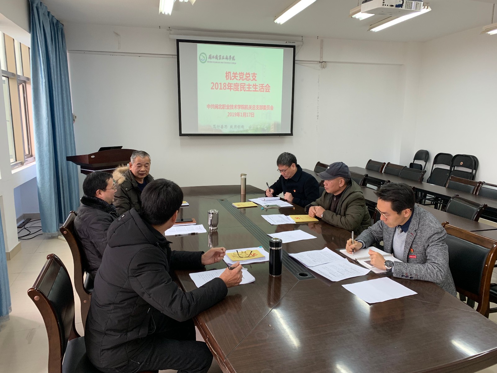 2019年1月17日下午👲🏽,学院机关党总支在行政楼五楼会议室召开2018年度领导班子民主生活会,机关党总支叶常明书记主持会议。