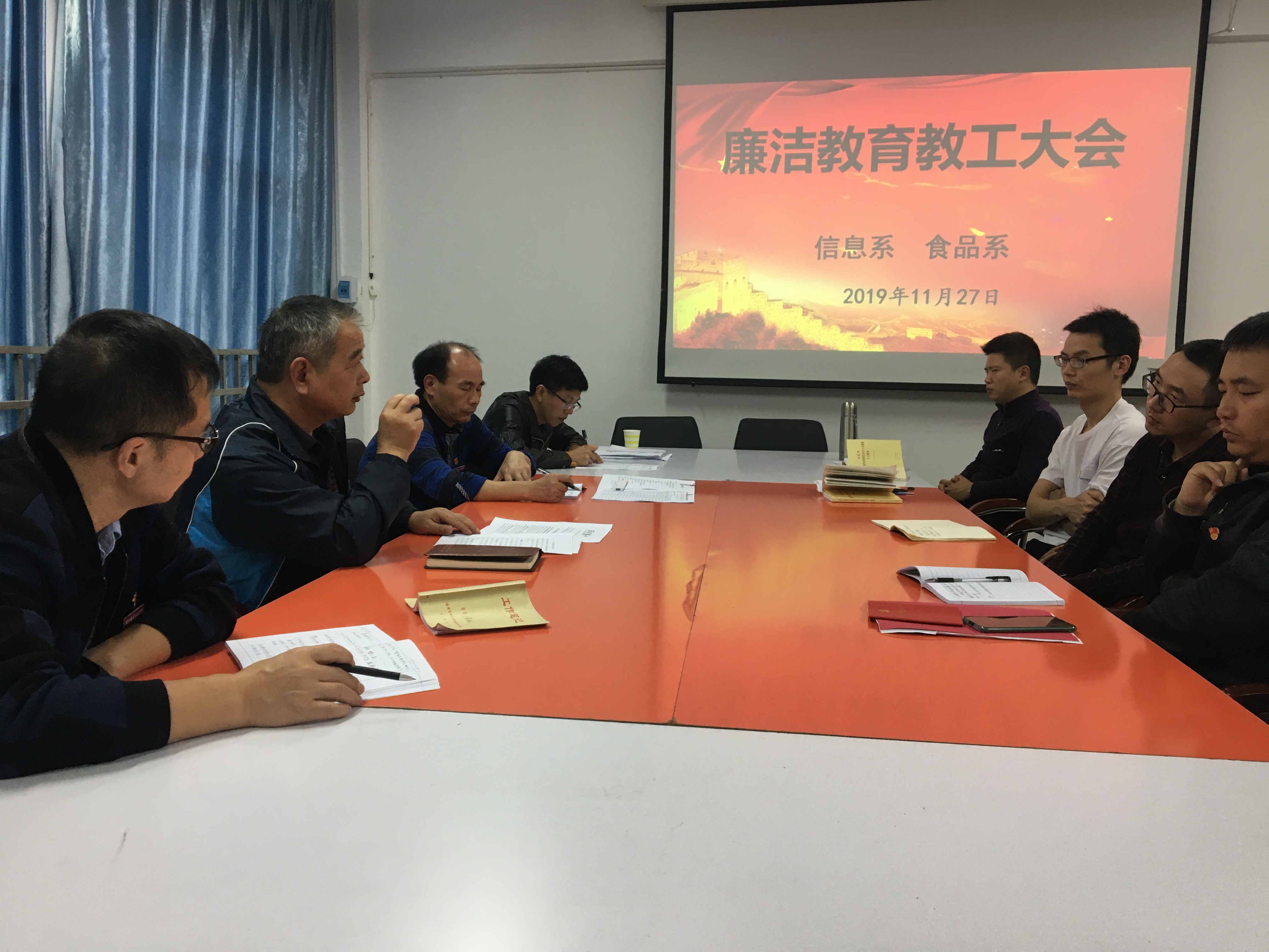11月27日下午👩⚖️,信息系和食品系召开了廉洁从教专题会议🖥,两系教职工参加了会议⛑️,院纪检监察审计处处长郑定华同志前往指导工作💸。