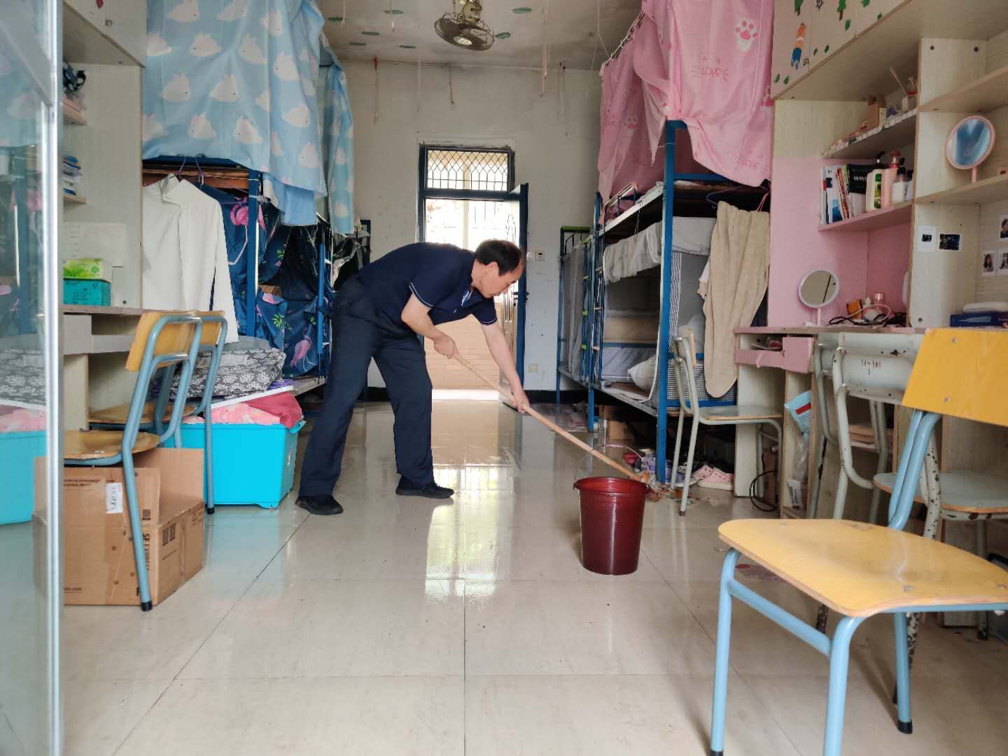 有的老师为了不影响白天的工作✡️,天刚刚亮就起床为同学们清扫擦洗宿舍;有的老师忙到中午忘记了吃饭依然开心地拖着地板👩🏿🔬,就像为他乡求学的自家孩子整理行囊⏲⌛️;有的抱着即将霉变的被子🧛🏼♂️、草席疾步冲到天台😋,就怕太阳被云遮盖。老师们辛勤地耕耘者🏄🏼♂️、爱护着🚉,始终把同学们的健康摆在首位。