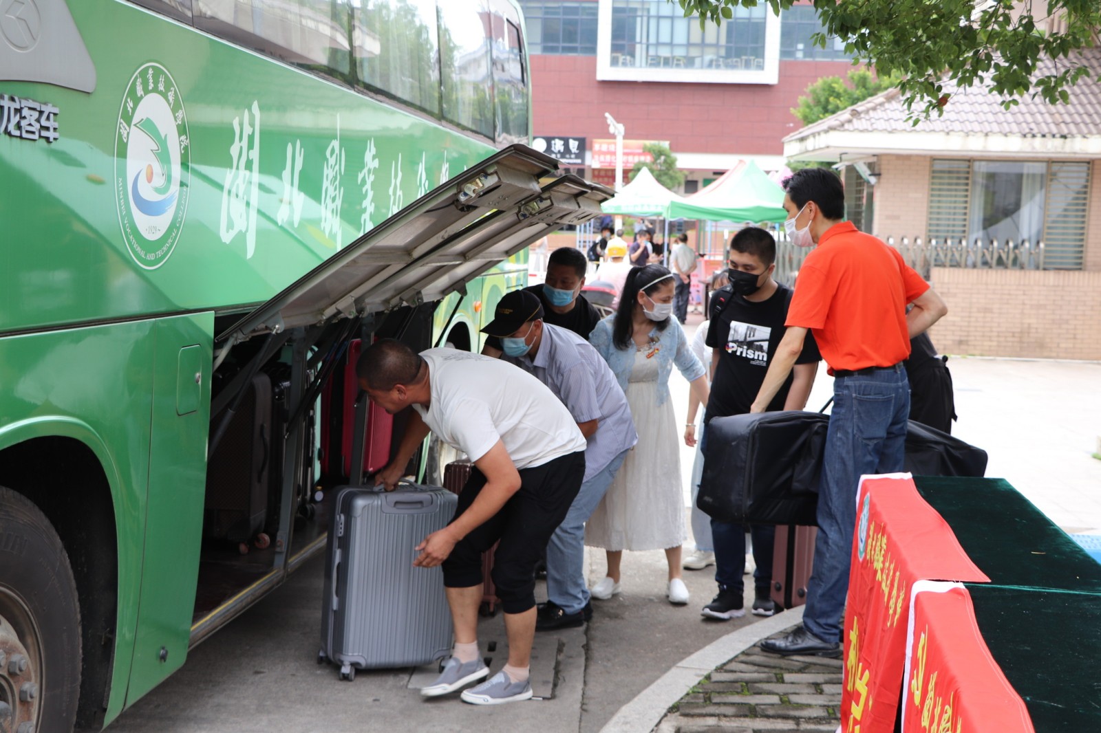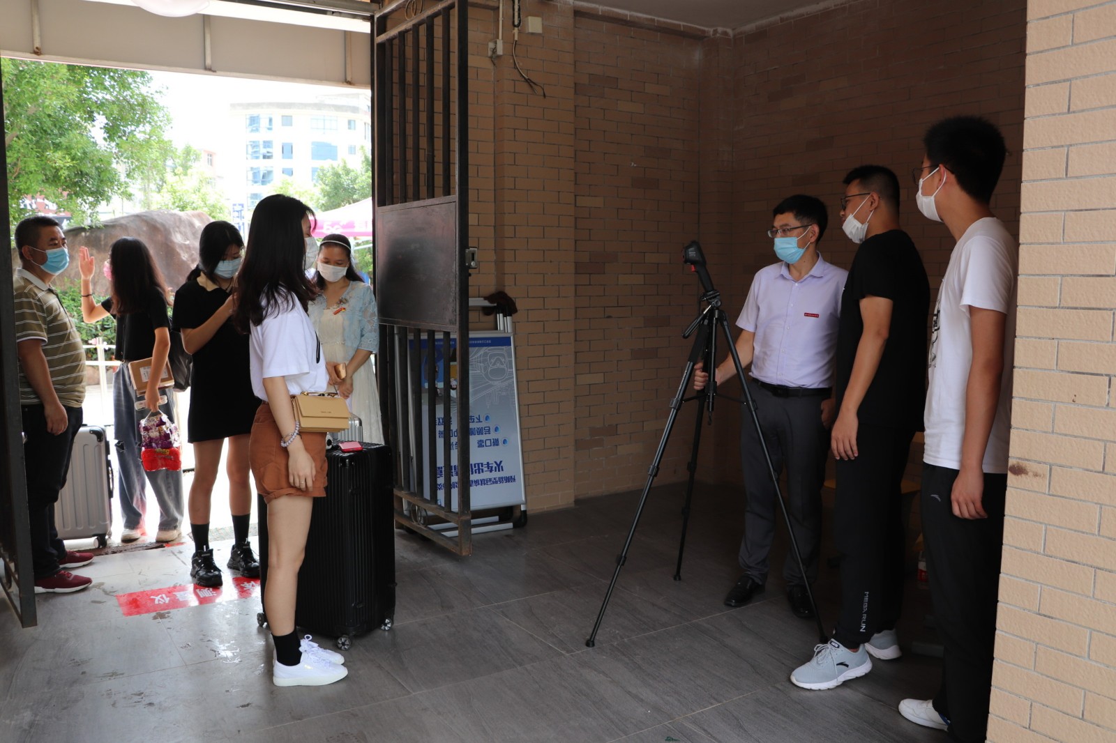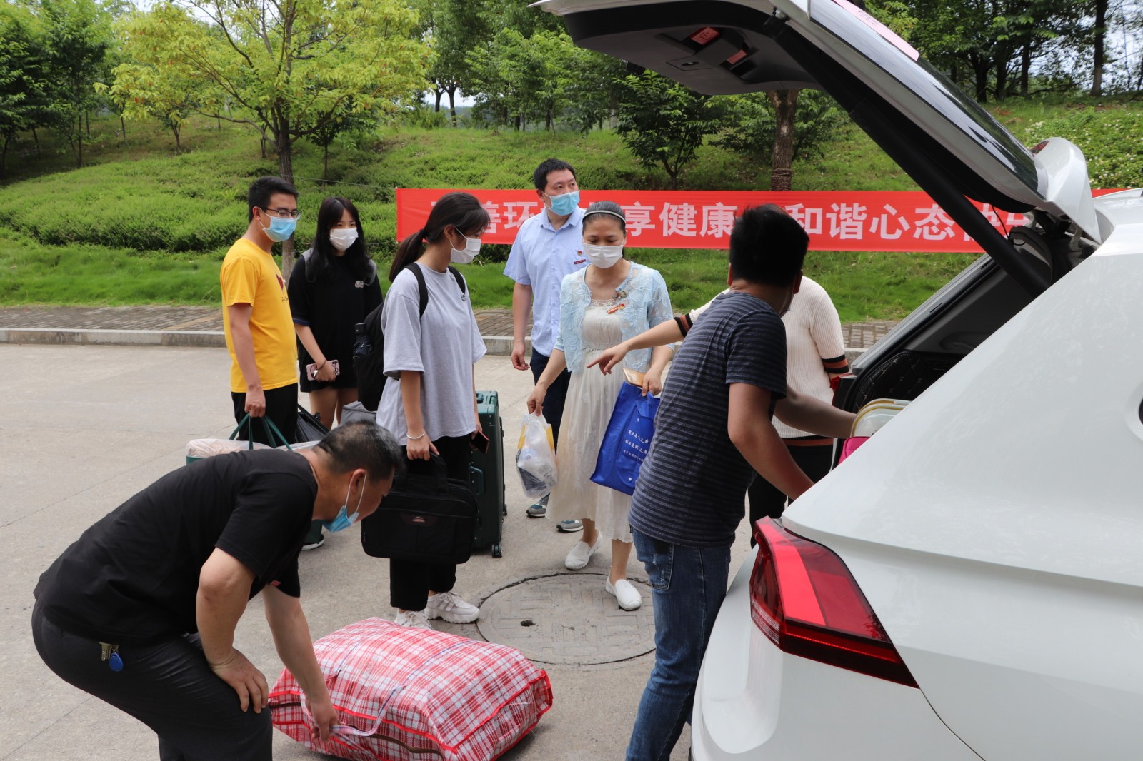6月2🙆🏽‍♂️,是我校首批学生春季返校复学🙎🏽‍♂️。为积极响应学院党委号召,全力保障返校复学工作📝,学院机关党总支号召第一支部和第二支部,迅速组建返校复学党员志愿服务队🙎🏼‍♀️。返校的莘莘学子提供优质暖心服务,党员志愿者们组建了三个小分队🍛,一队在校门口迎接、引导学生下车👭,帮助搬送行李到消毒处进行消毒💨。一队在体温检测门为同学们检测体温和进行防疫宣传。还有一队是爱心接送学生的车队。学校的大巴车🧑🏽‍🏭,党员志愿者们的私家车🤸🏽‍♀️,都纷纷加入了接送的队伍车子有序的停放在校门口一侧的大道上🚓,学生们一进校大门♦︎,就有党员志愿者们帮助搬行李🧑🏿‍🔬,并引导坐上事先开好空调等候着的车子。党员志愿者们上午顶着烈日冒着炎热,下午又淋着暴雨👇🏻⌚️,全天无休,从上午八点服务到晚上十点,为学生装行李,卸行李🕘,搬行李👨🏻‍🎨,宣传防疫知识,嘘寒问暖👰‍♂️🤸🏻‍♀️。从校门口到宿舍返校的同学们感受着学校的关怀爱护,心里充满了温暖和感动!