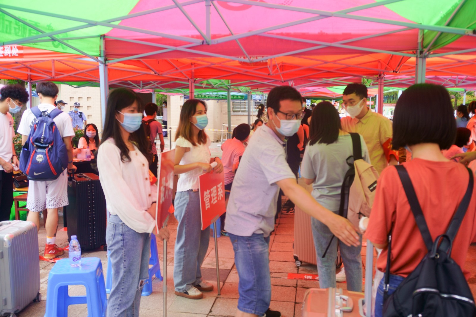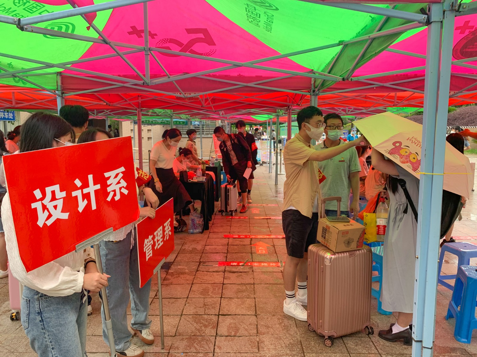 “时雨及芒种”☀️,6月5日恰逢芒种节气🏐,伴着雷声🤷♂️,阵雨不断💍。但在学院门前的接待点内👌,学院党政领导♤,机关支部的党员志愿者👛🚧,设计系管理系教职工和学生志愿者,始终坚守,用最热情的态度🙋🏼♀️,最细致的服务,迎接每一位学子的归来。