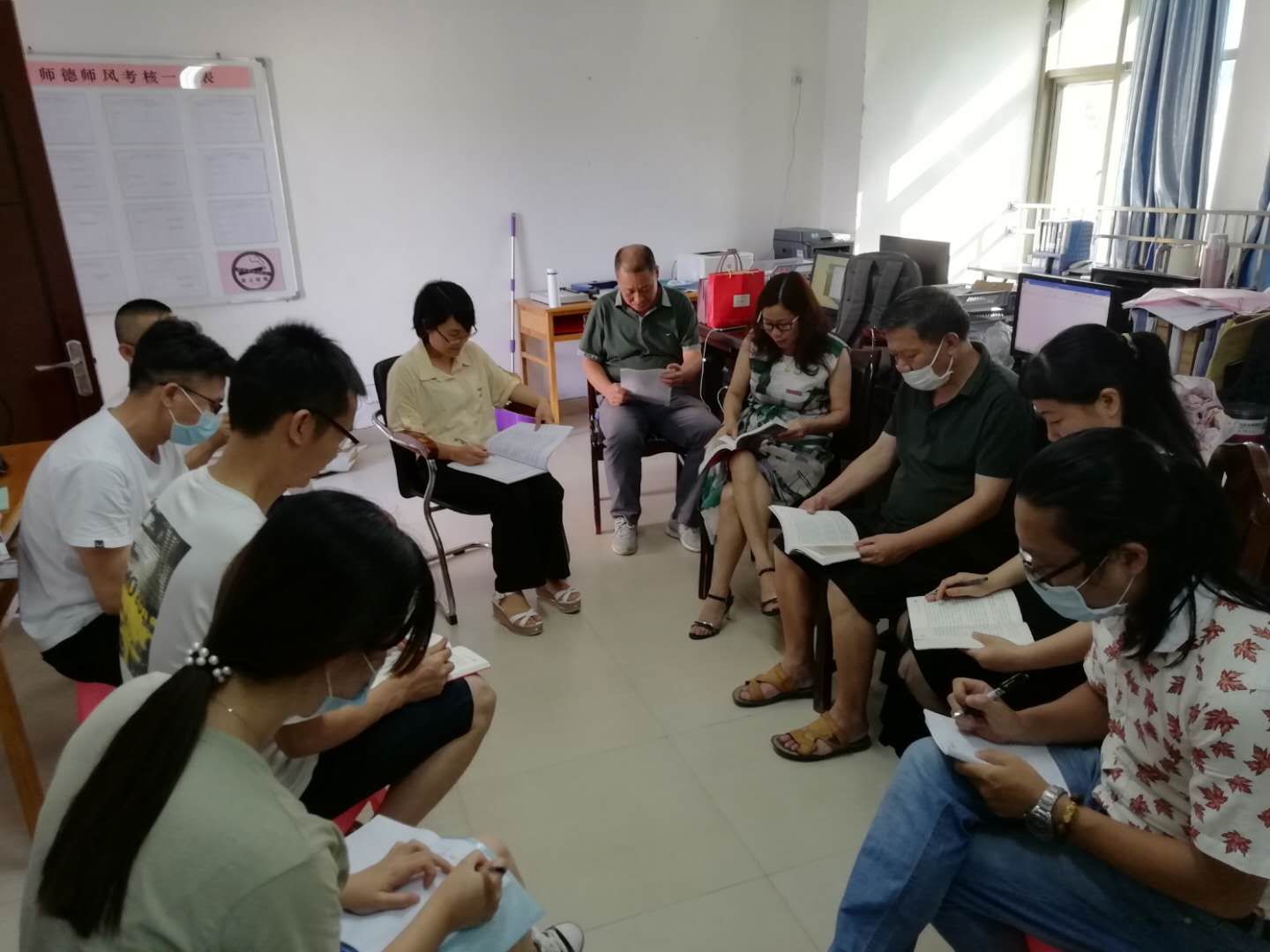 集体学习结束后,根据会议议程,安排第一支部、第二支部和普通教师三个小组到不同的会议室进行小组交流研讨。各小组根据自身小组的特点就滴水穿石弱鸟先飞闽东精神展开了热烈的探讨,与会同志踊跃发言。