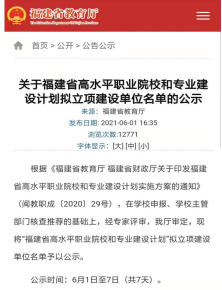 6月1日,省教育厅对“福建省高水平职业院校和专业建设计划”拟立项建设单位进行公示,我院机电一体化技术专业群进入“立项建设高水平高职专业群”建设单位公示名单🧸。该项目申报具体负责人为我院信息系机电一体化专业主任杨成菊老师👱🏿♂️。