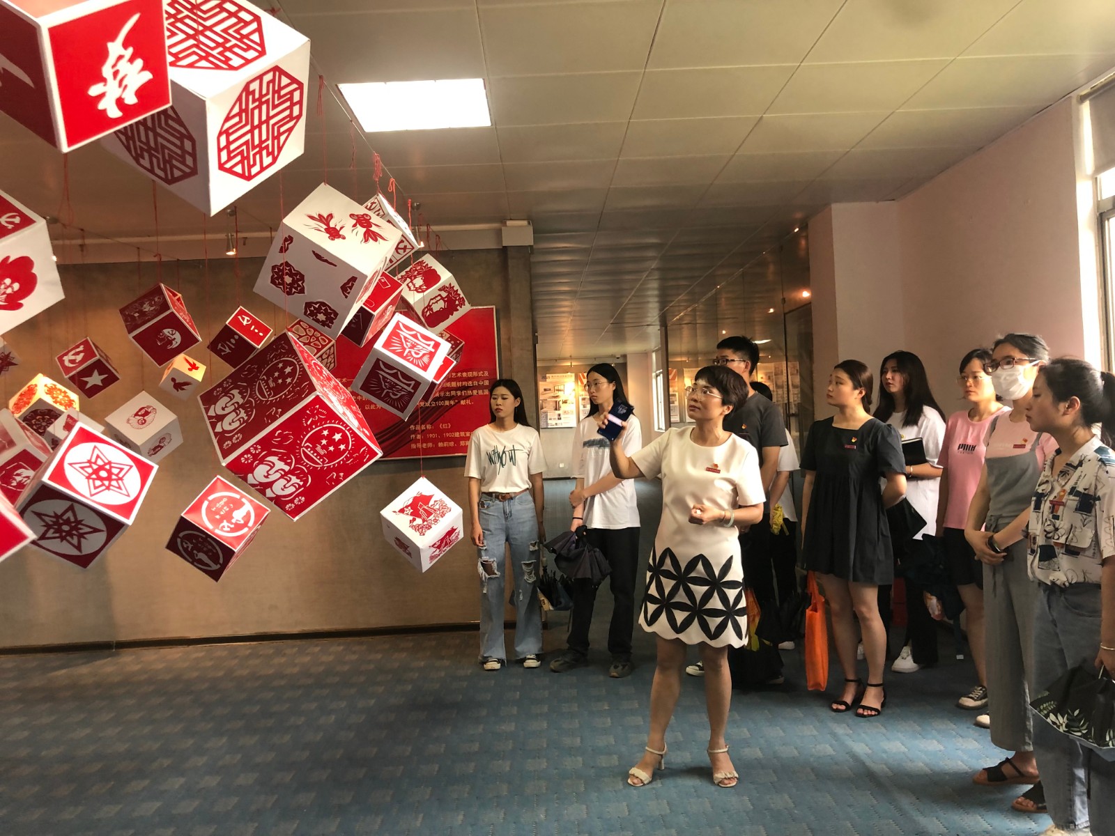 随后,大家参观了庆祝中国共产党成立100周年“丹青颂党恩”的艺术作品展。设计系服装与服饰专业、建筑室内设计专业的专业主任为大家讲解了艺术作品的创作理念和每一件作品所包含的师生对中国共产党的感恩之情。