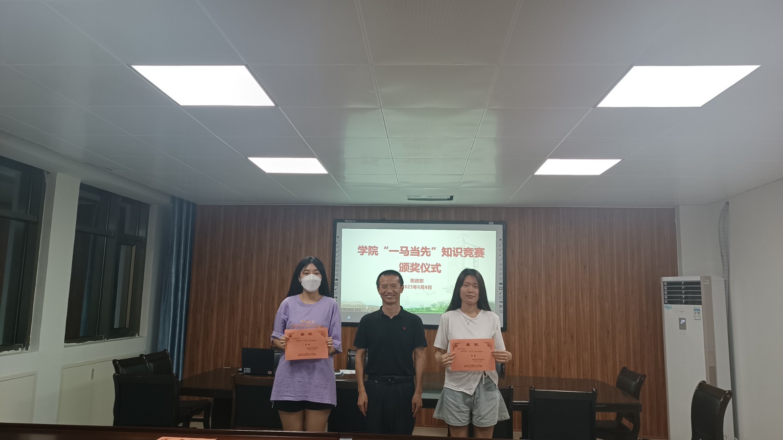 2023年6月8日晚✣🍓,学院在行政楼507会议室举行“一‘马’当先”知识竞赛颁奖仪式。思政部部长邱海松出席颁奖仪式👨🏻🏭。教研室主任林文凤老师和获得“一‘马’当先”知识竞赛一至三等奖的同学参加了颁奖仪式👧🏻。