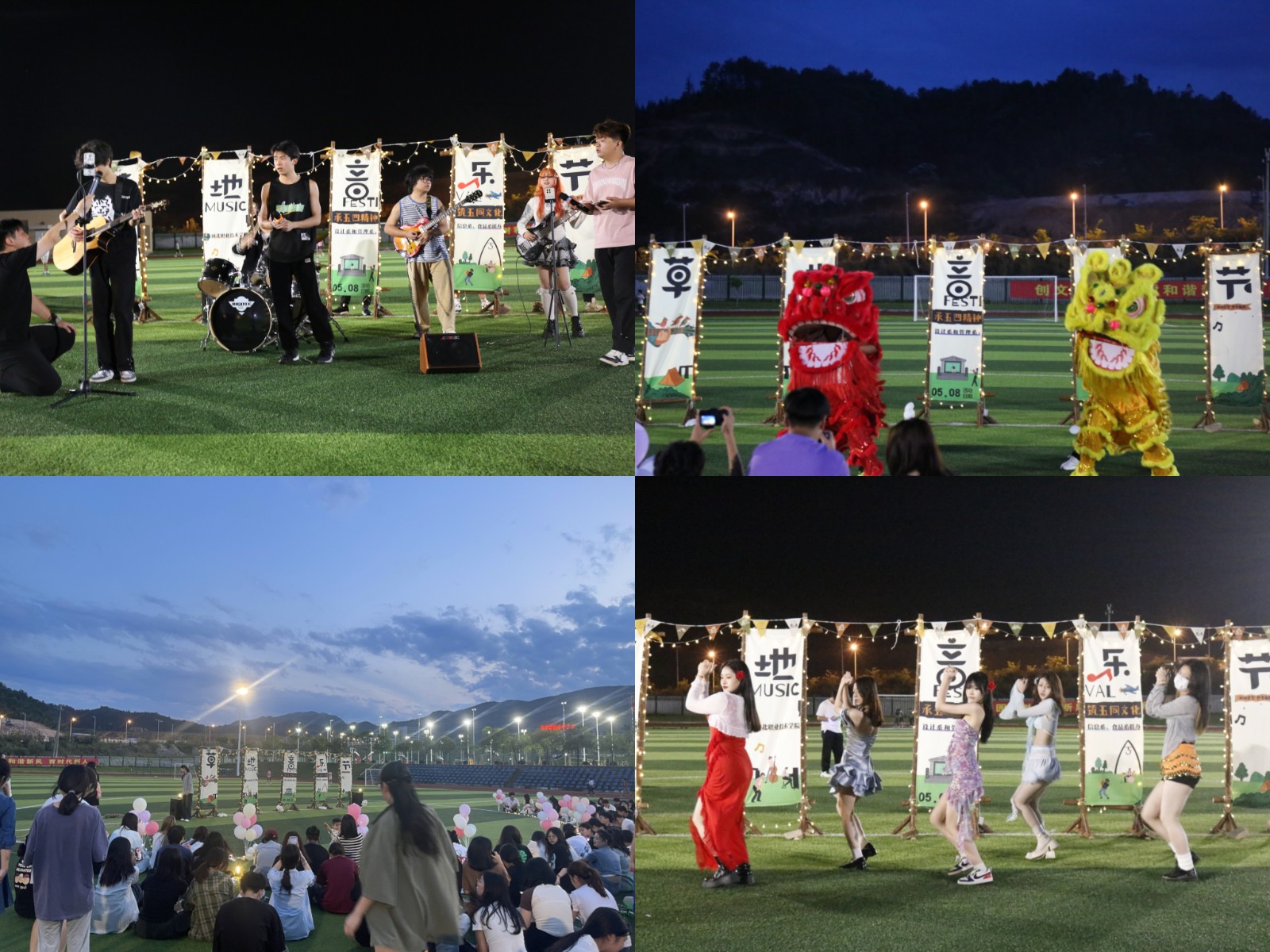 为纪念五四运动105周年,弘扬五四精神,学习宣传贯彻习近平总书记五四重要寄语精神,牢记嘱托,凝聚力量,奋力书写为实现中国式现代化挺膺担当的青春篇章。采彡争霸设计系和管理系、信息系、食品系于5月8日晚在田径场联合举办“承五四精神,筑五同文化”主题草地音乐节,活动吸引了近千名同学参与。