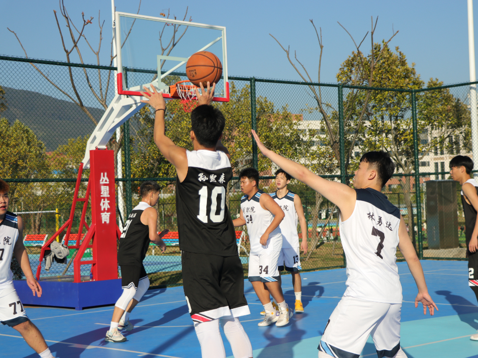 △学院党委副书记、院长叶世森为篮球友谊赛开球