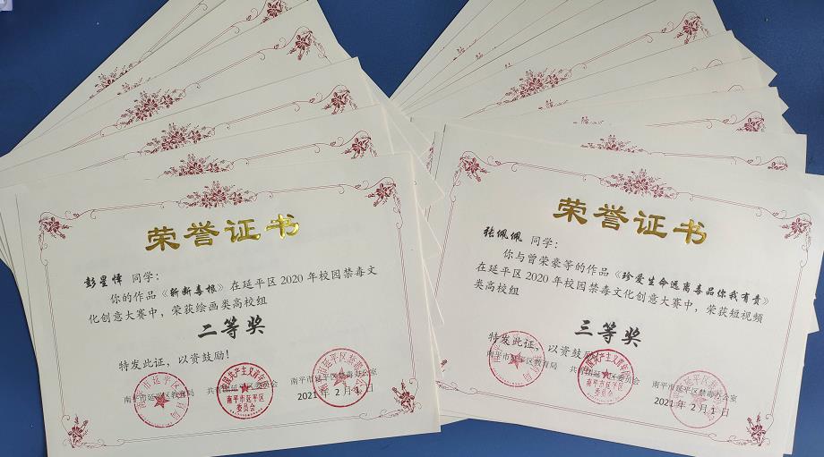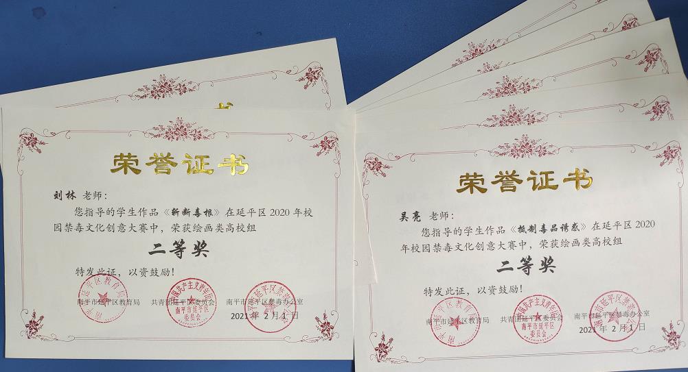 近日🌅🧑🏻🦼➡️,从延平区禁毒办“延平区2020年校园禁毒文化创意大赛”评审组处传来好消息:我校师生共同创作🧞♂️、申报的一批短视频、绘画作品分获本次大赛的二、三等奖🤟🏽。具体包括👇🏻: