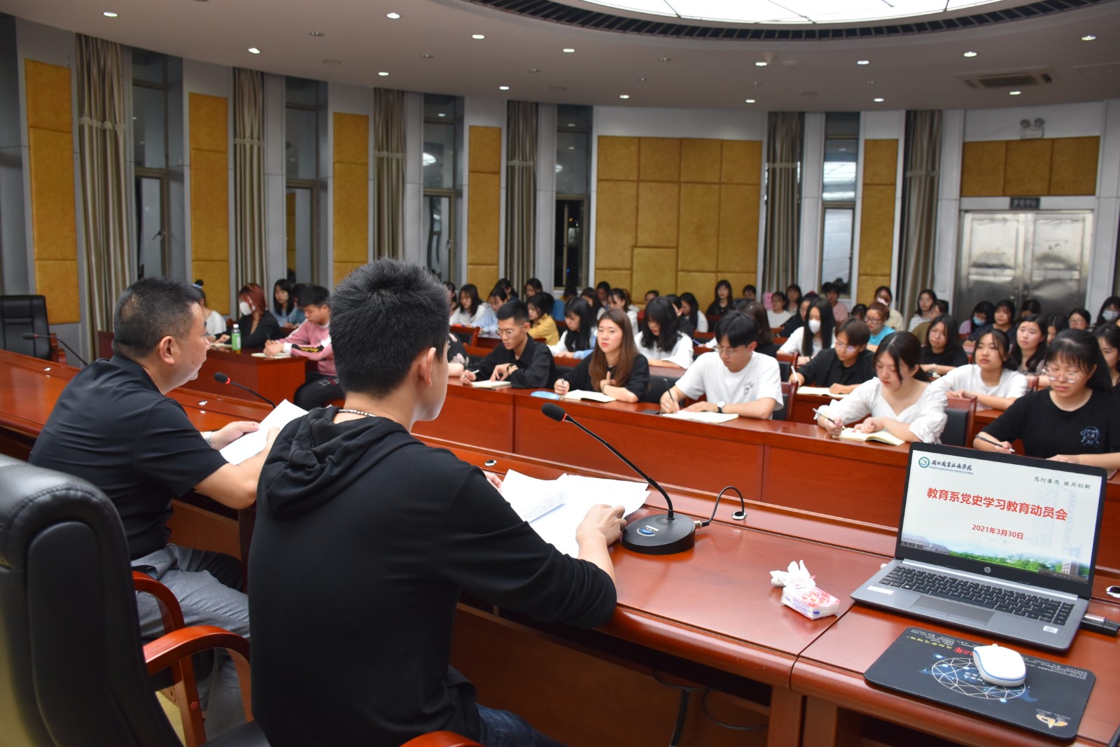 2021年3月30日👮🏼,教育系党总支在行政楼一楼报告厅召开党史学习教育动员会,教育系辅导员、全体入党积极分子参加了会议。教育系党总支书记李清龙同志出席会议🤷‍♀️,会议由谢资强同志主持👩🏻‍🌾。