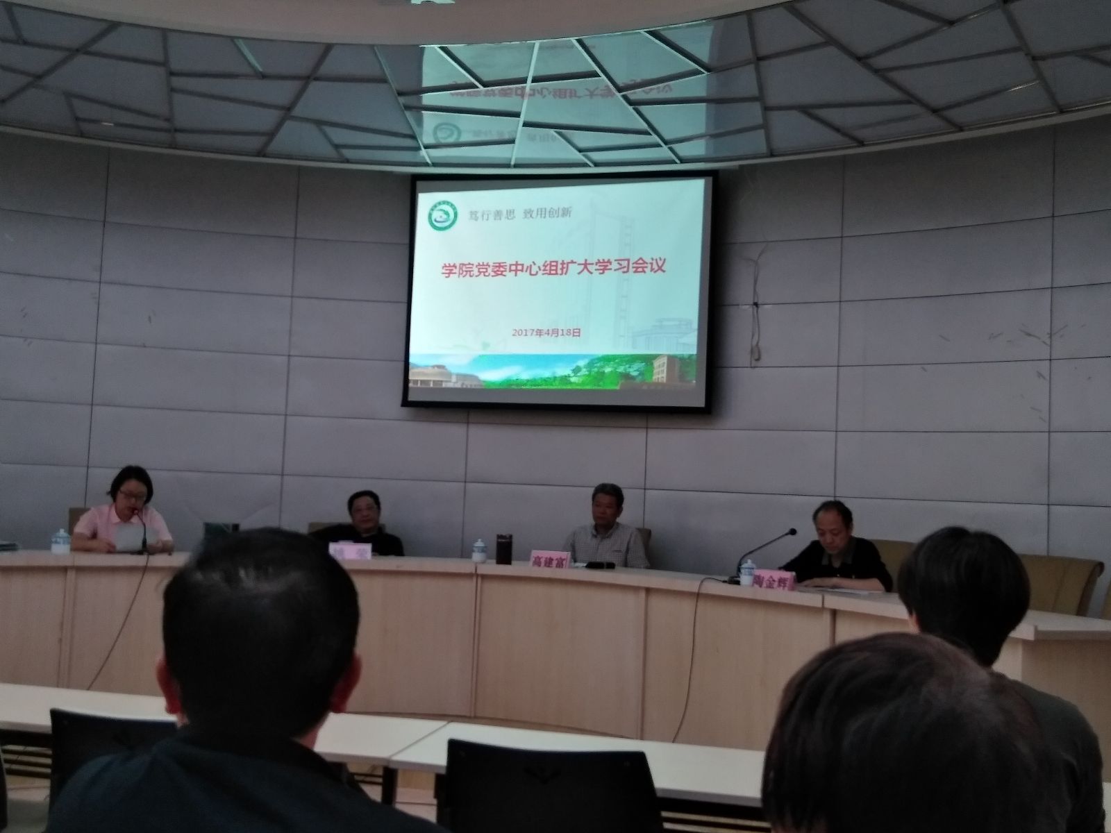 4月18日下午,我院在办公楼一楼报告厅召开了“学院党委中心组扩大学习会议”😆,会议内容为学习廖俊波同志先进事迹👩🏿⚖️,会议由党委副书记陶金辉主持,学院各处室及各系部负责人🤟🏿、党总支负责人参加了会议,我系张金良主任、郑启阶副书记参加了会议💅🏼。