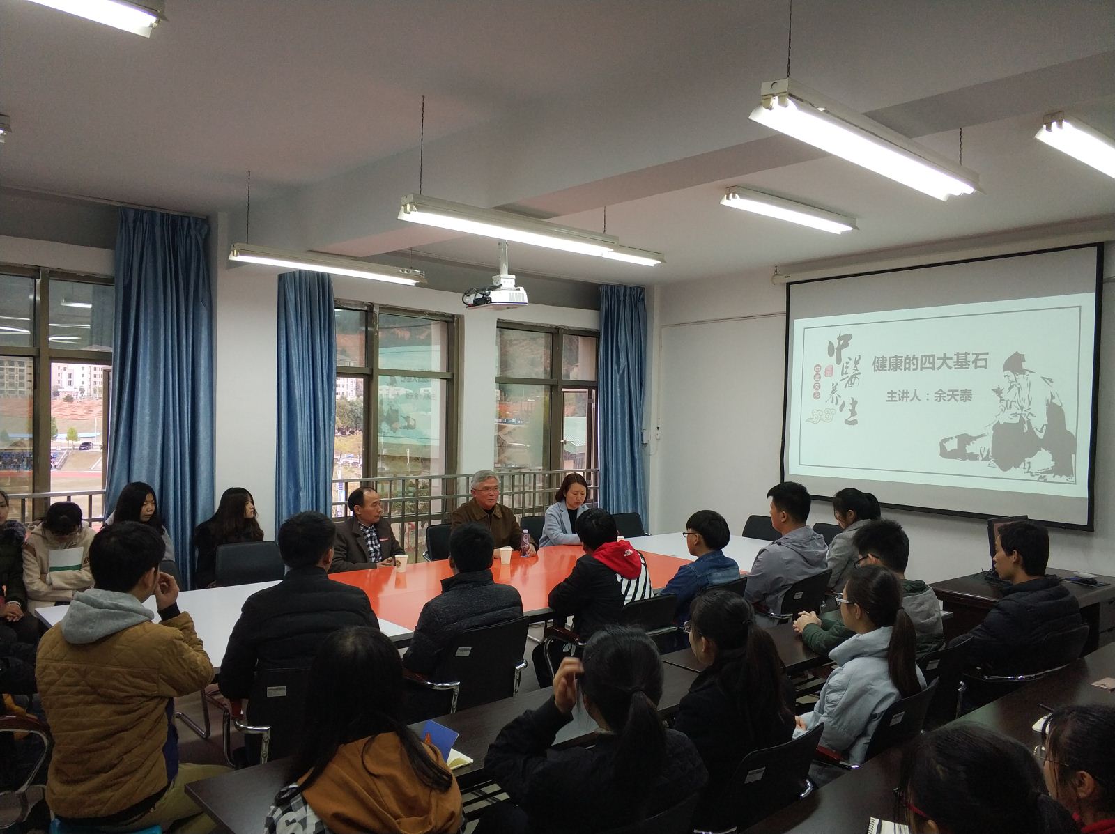 2018年3月8日下午👷‍♂️,福建省南平市人民医院名誉院长🧑🏽‍🦰、福建中医大学教授、硕士生导师、党委书记余天泰到我系开展题为《健康的四大基石》的讲座🙂‍↕️👨🏻‍💼。余天泰书记以生动朴实的语言和贴近生活的实例从饮食、运动、心态、习惯四个方面为我系师生讲解保健知识,讲课生动活泼,使广大师生了解了保健的知识,增强了保健意识。
