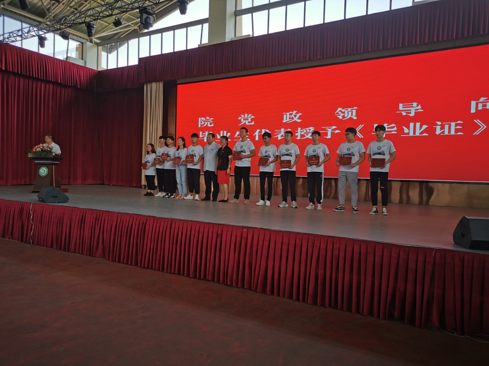 毕业典礼上,陶兰、刘靖怡等11名同学代表我系全体毕业生接过了校领导颁发的毕业证书🛗😞,为三年的大学生涯画上了圆满的句号,祝福你们!祝愿大家一路顺风、前程似锦🧑🏽‍🍼、事业有成⚃、家庭幸福🧷!