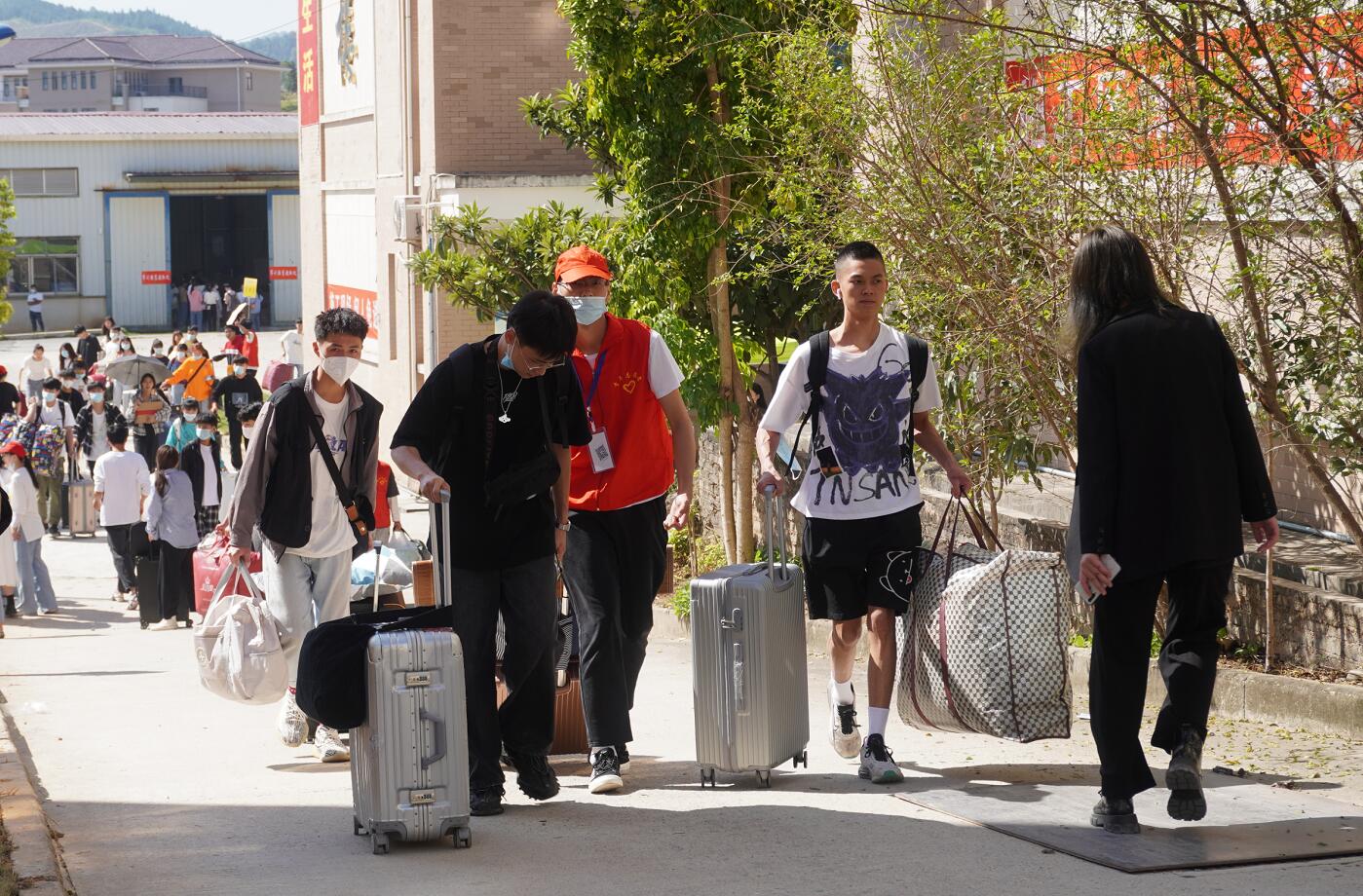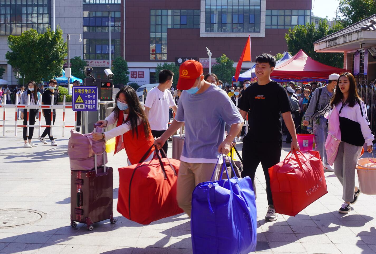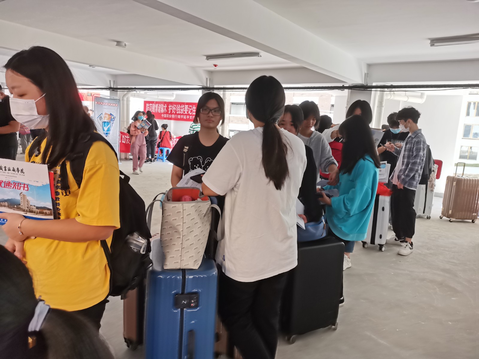 “食品营养与检测专业请到这边“、“计算机专业请来我那排队,保持1米以上距离”┈,报到现场悦耳的声音此起彼伏,迎新工作的同学们熟练地将新同学的名字敲进电脑并收好他们递交的入学材料,分发给他们温馨小屋的钥匙,目送新同学慢慢远去。
