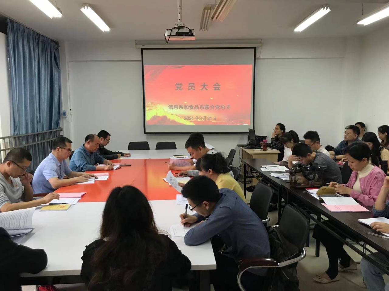 3月31日下午,信息系和食品系联合党总支在行政楼407会议室召开了换届选举党员大会,会议由党总支书记郑启阶主持♧,全体党员参加了会议,选举产生了新一届党总支委员会。