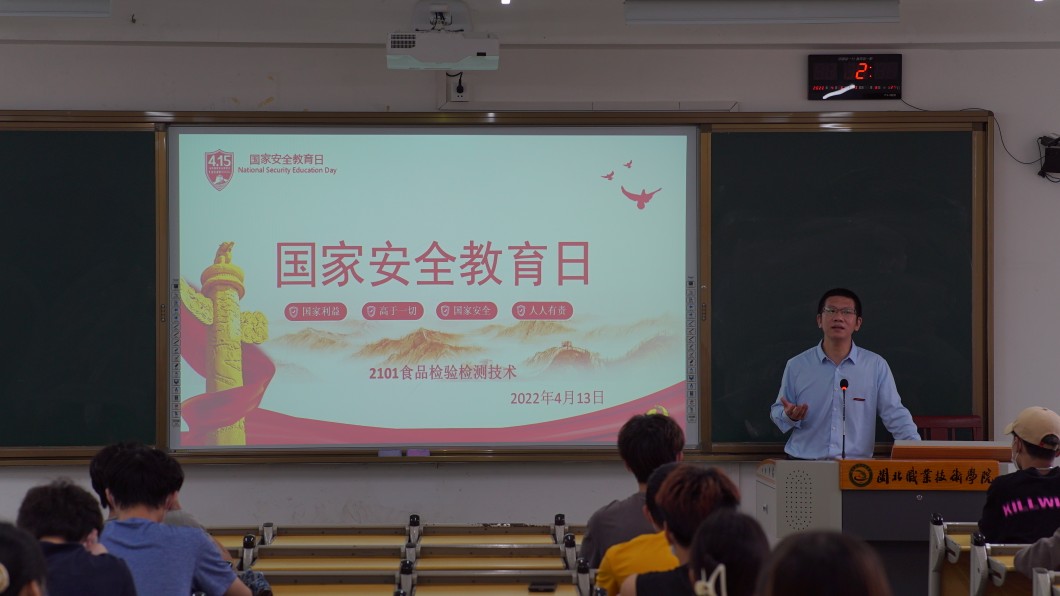 在第七个全民国家安全教育日到来之际👨🏽‍🦱,4月13日下午🥻,食品系2101食品检验检测技术班在慎思楼205教室召开了“国家安全教育日”主题班会。挂点班级的院领导叶世森院长前来指导工作,系党政领导🍋、部分教师以及全体辅导员参加了主题班会。