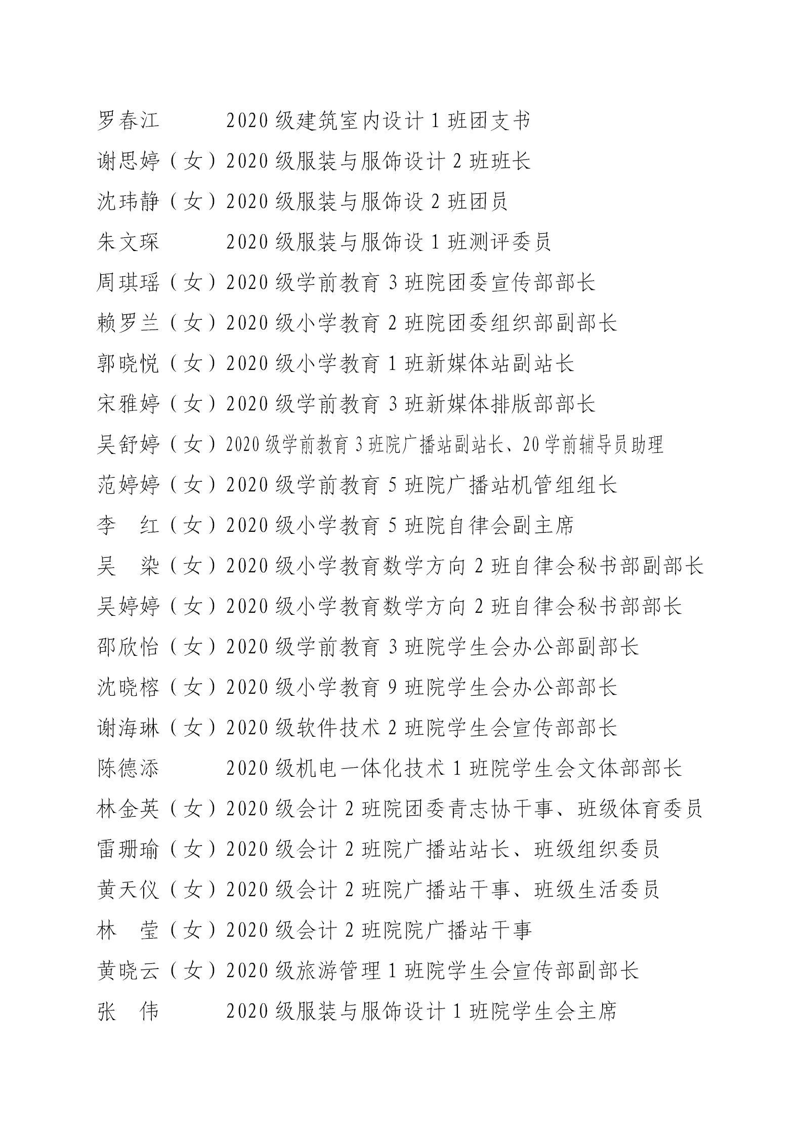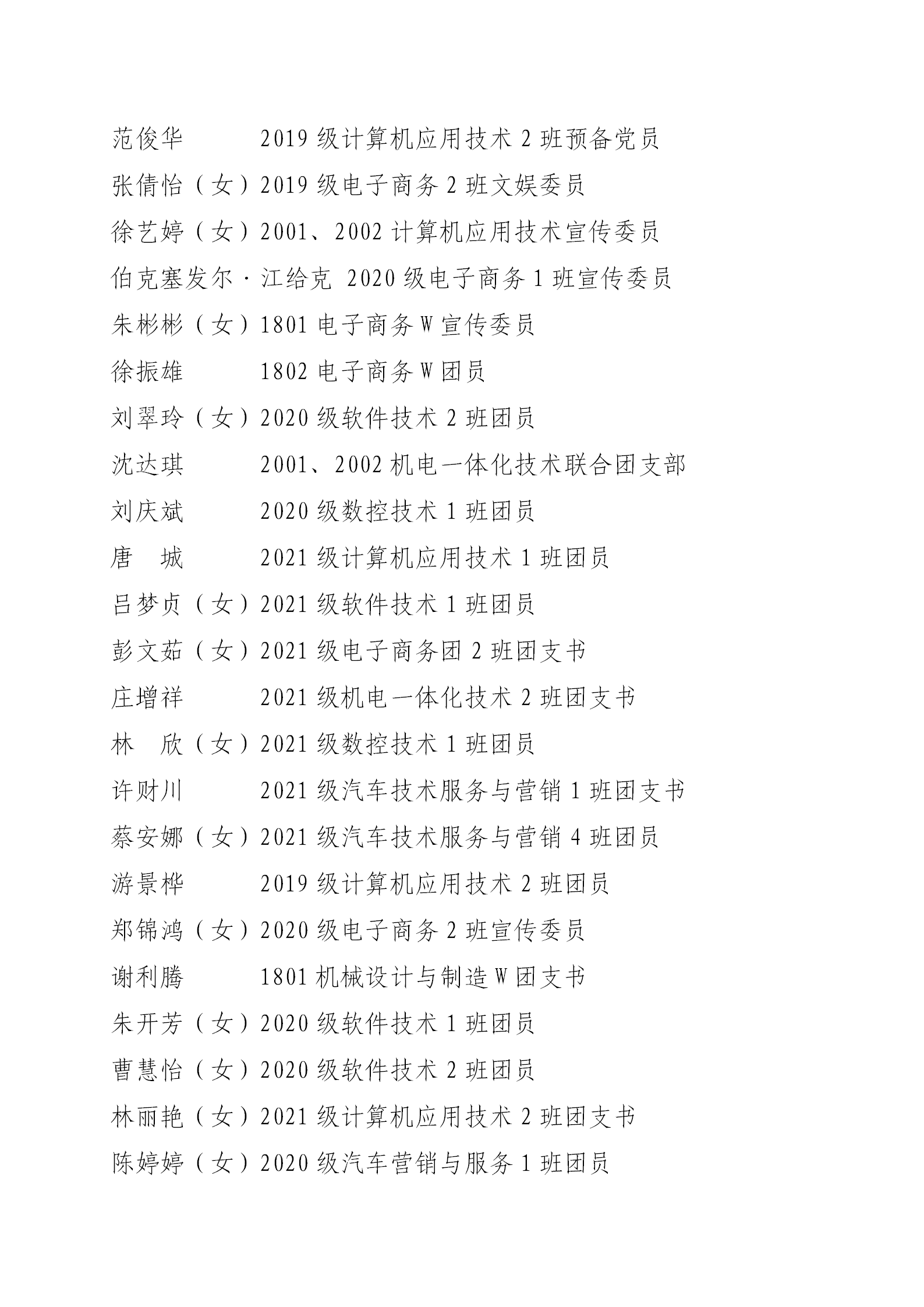 关于表彰2021-2022学年学院共青团先进集体、先进个人的决定(闽北职院团〔2022〕7号)