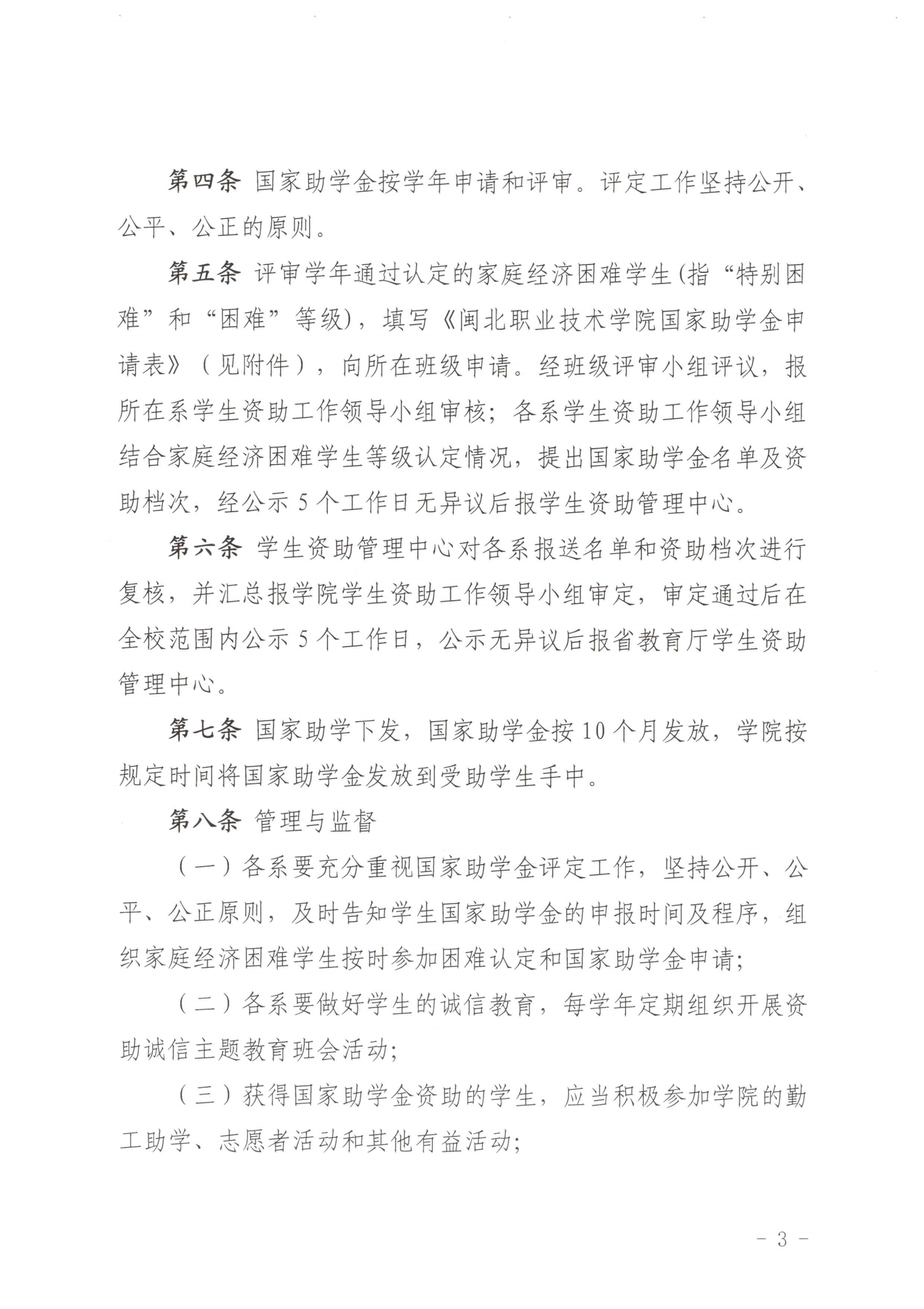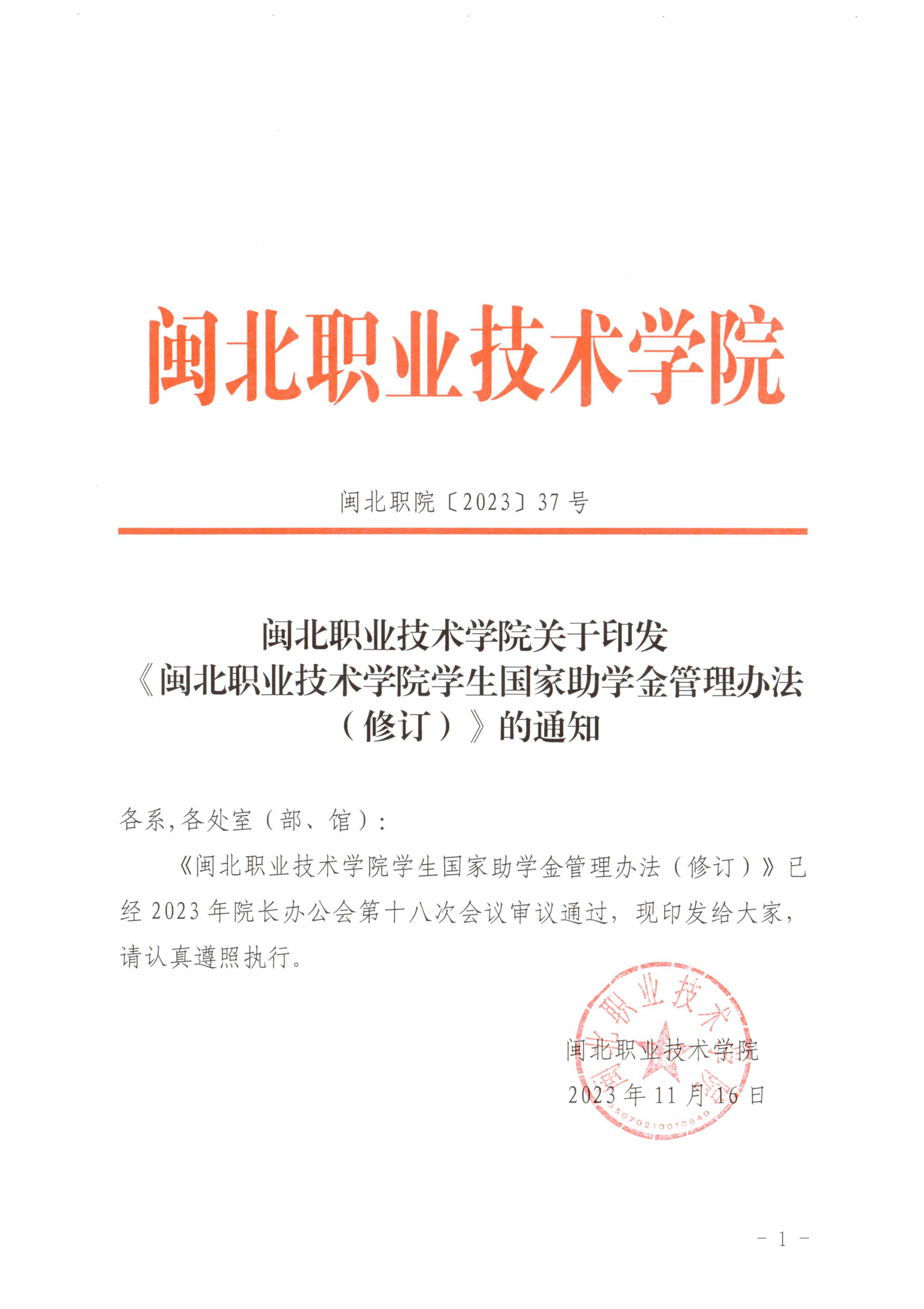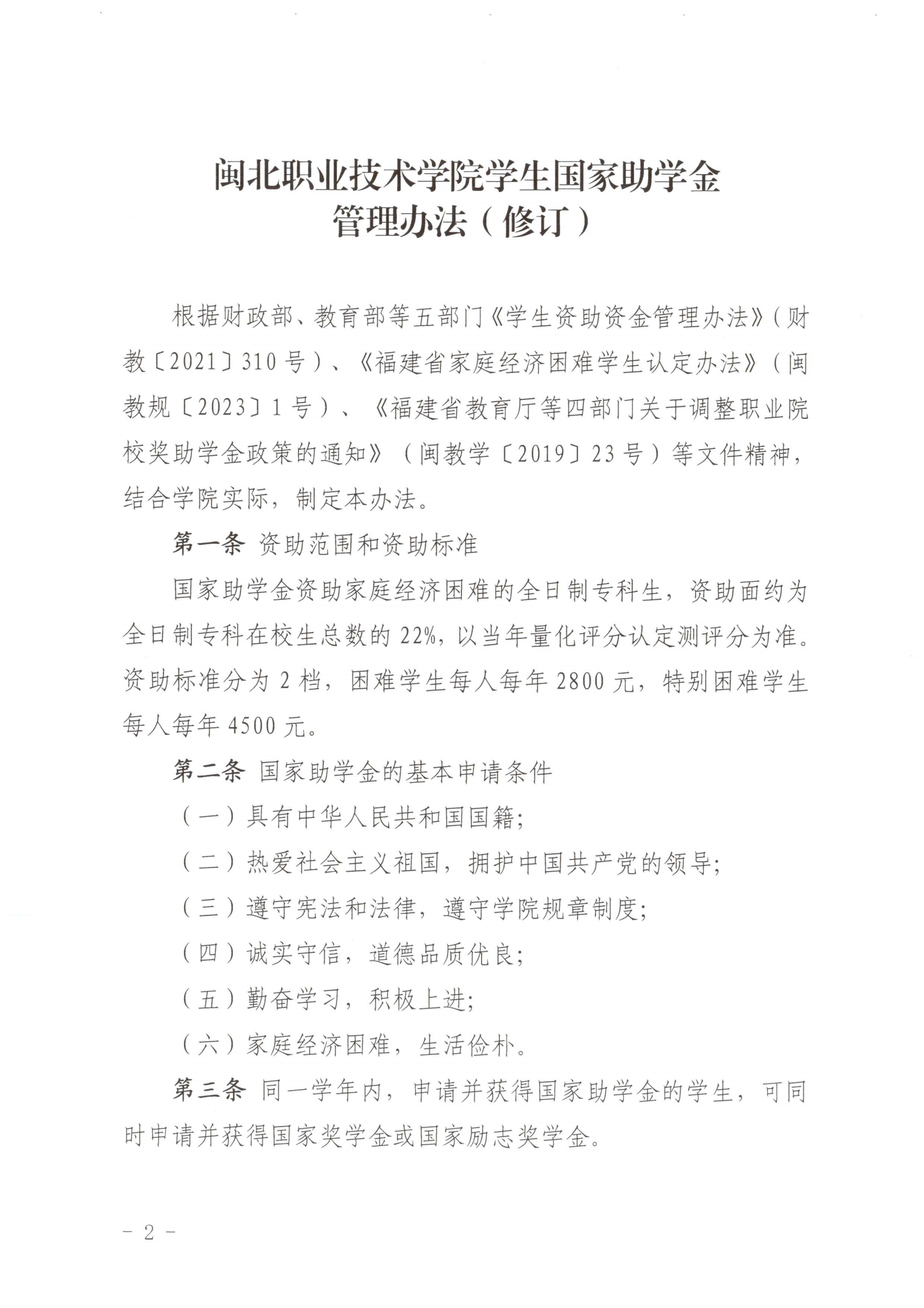 闽北职院〔2023〕37号 采彡争霸学生国家助学金管理办法(修订)