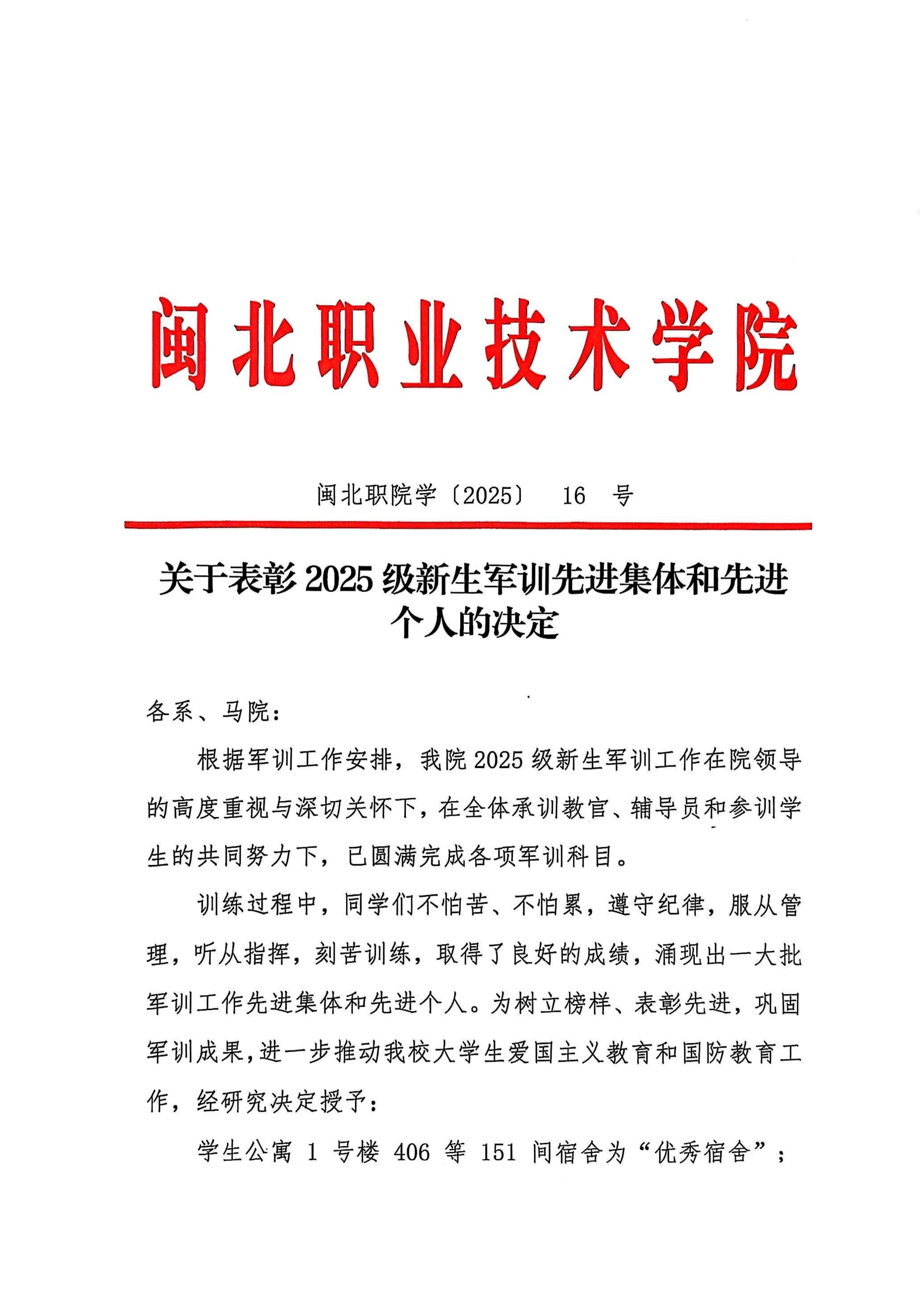 采彡争霸关于表彰2025级新生军训先进集体和先进个人的决定