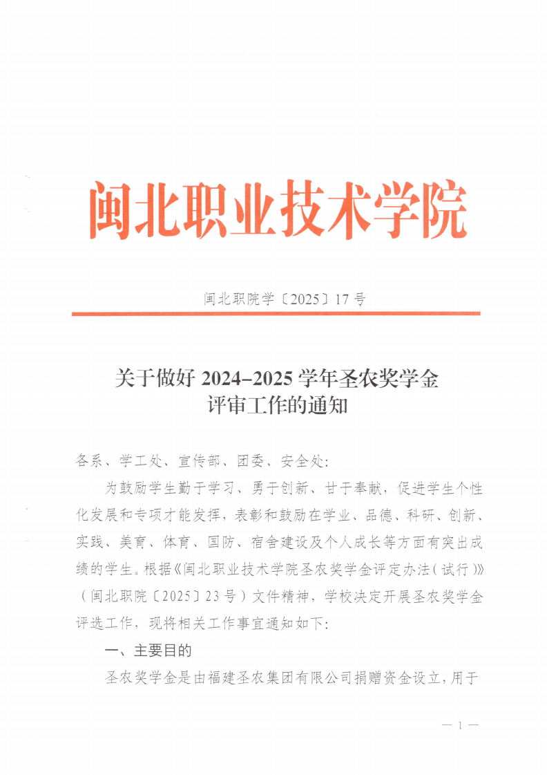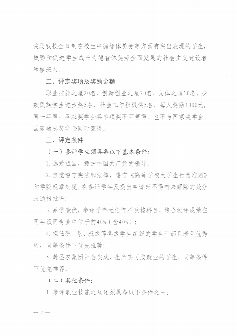 关于做好 2024-2025 学年圣农奖学金评审工作的通知