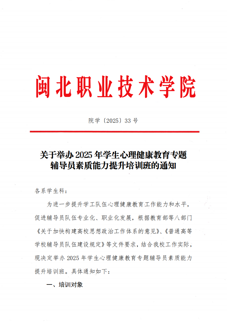 关于举办2025年学生心理健康教育专题辅导员素质能力提升培训班的通知