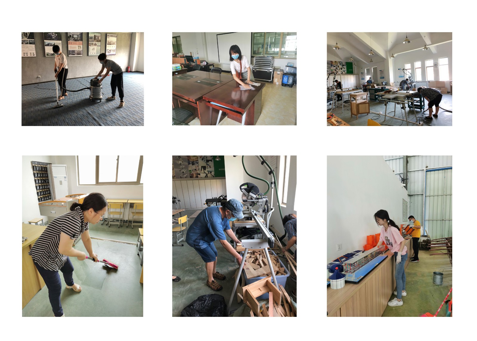全体专业教师,按照专业团队分组,对餐饮实训室、客房实训室;企业沙盘模拟实训室、手工账实训室🌶;虚拟仿真施工实训室、工程检测实训室🚙;建筑室内设计专业综合实训室🍠🧗🏼‍♀️;创意产品设计加工中心👛;服装生产实训室等的地面👮🏿‍♂️、桌面👲🏻、部分设备表面、常用工具等进行打扫消毒👳🏽,做到不留卫生死角👨🏻‍💻,为本学期实践教学创造干净、卫生的环境。