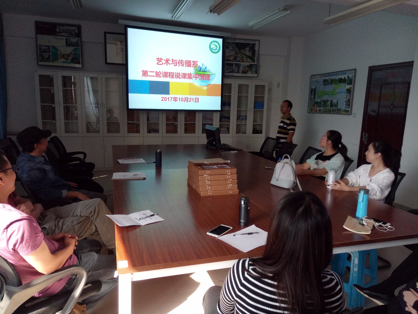 2017年10月21日🤹,我系在行政楼310会议室举行第二轮课程说课演练👮♂️。建筑室内设计和服装与服饰设计专业的专业基础课、专业核心课任课教师均参加了说课演练活动。